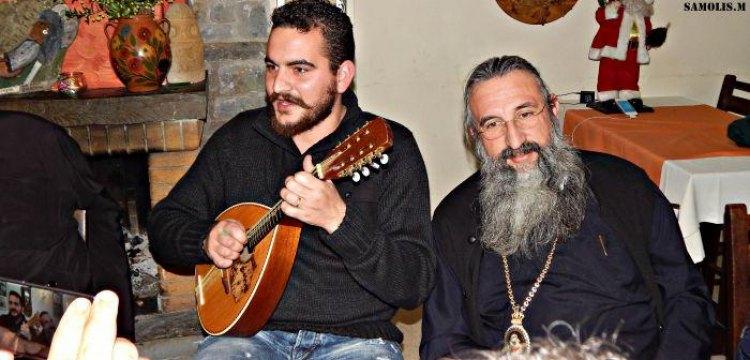 Μετά την εκδήλωση ο π.Ανδρέας Κεφαλογιάννης με την ευκαιρία και της ονομαστικής του εορτής παρέθεσε τραπέζι σε επίσημους και φίλους, στην παραδοσιακή ταβέρνα “Αροδαμός”. Εκεί ο γαμπρός του Βασίλης Σωπασής έπιασε για λίγο το μαντολίνο και του αφιέρωσε την παρακάτω μαντινάδα: