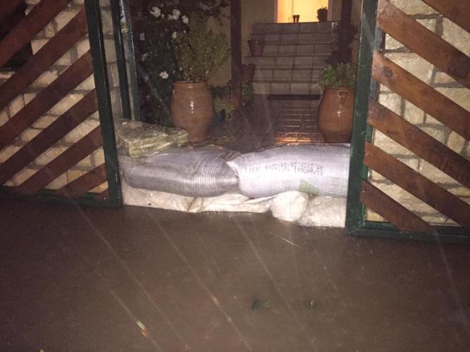 Όπως καθαρά φαίνεται στις φωτογραφίες, καθώς αυτό συμβαίνει σε κάθε νεροποντή, οι κάτοικοι είναι εφοδιασμένοι με σακούλες από οικοδομικά υλικά, τα οποία τοποθετούν στις εισόδους των σπιτιών τους, προκειμένου να εμποδίσουν το νερό να μπει μέσα στα σπίτια.