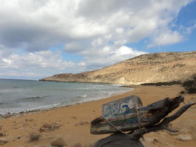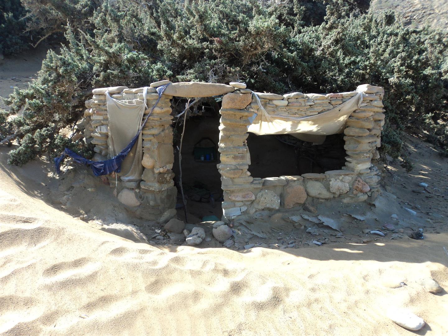 Κατέβηκα στο Λαυρακά κι άρχισα να περπατάω παραλιακά με προορισμό τον Άη Γιάννη. Κατά τη διάρκεια της διαδρομής συνειδητοποίησα πως όχι μόνο υπήρχαν άνθρωποι στην περιοχή, αλλά είχαν οργανώσει και μία μικρή κοινωνία. Υπήρχαν καβάτζες σε διάφορα σημεία της αμμουδιάς που αν δεν πήγαινες πολύ κοντά τους, δεν μπορούσες να τις διακρίνεις. Καβάτζα ονομάζουν οι ντόπιοι, αλλά και οι επισκέπτες της Γαύδου, τα παραπήγματα λίγων τετραγωνικών μέτρων από πέτρα, ξύλο και νάυλον που βρίσκονται στην παραλία και χρησιμοποιούνται για διαμονή από, συνήθως, μη Γαυδιώτες σ’ όλη τη διάρκεια του χρόνου. Πέρα από τις καβάτζες υπήρχαν πηγάδια με οδηγίες χρήσης σ’ ελληνικά και αγγλικά, αντλίες νερού, αυτοσχέδιες ψησταριές και πετρόκτιστοι φούρνοι που φανέρωναν πως αρκετά πράγματα από όσα είχαμε δει στην ταινία του Άγγλου σκηνοθέτη είναι εφικτά. Πέρασα μέσα από τους αμμόλοφους του Άη Γιάννη και έφτασα στο τροχόσπιτο του Καναδού από όπου, όπως είχαμε πει το προηγούμενο βράδυ, ήρθε και με πήρε με το αμάξι για να βρούμε τον Γιάννη στο Σαρακήνικο.