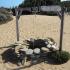 Η καρέκλα είναι τοποθετημένη πάνω σε μία πέτρινη πυξίδα που έχει χαραγμένα τα σημεία του ορίζοντα και με λίγη φαντασία θα μπορούσε ν’ αποτελεί τη βελόνα της.