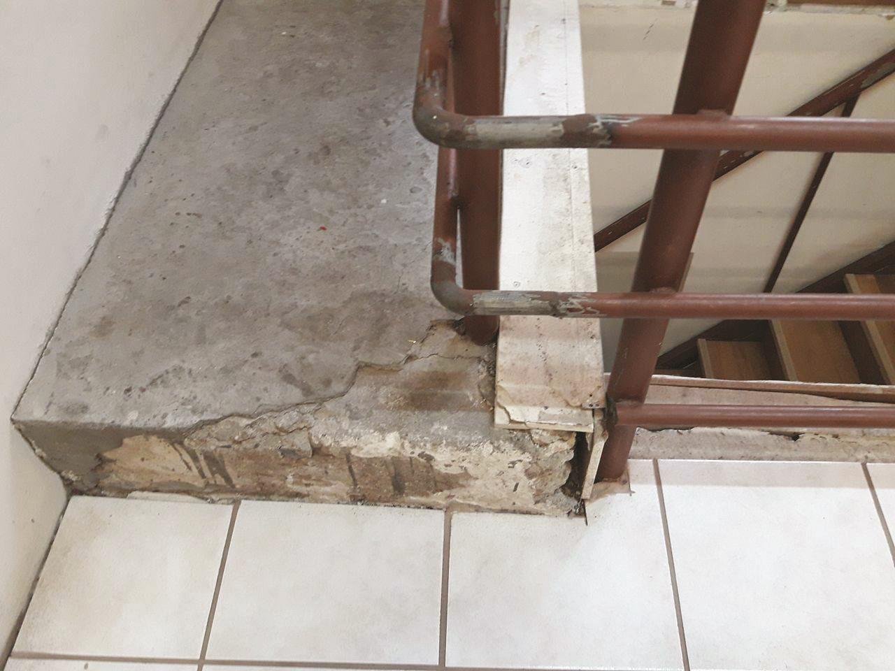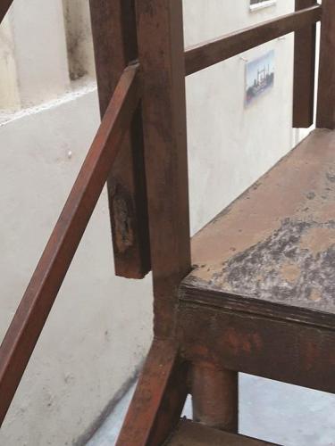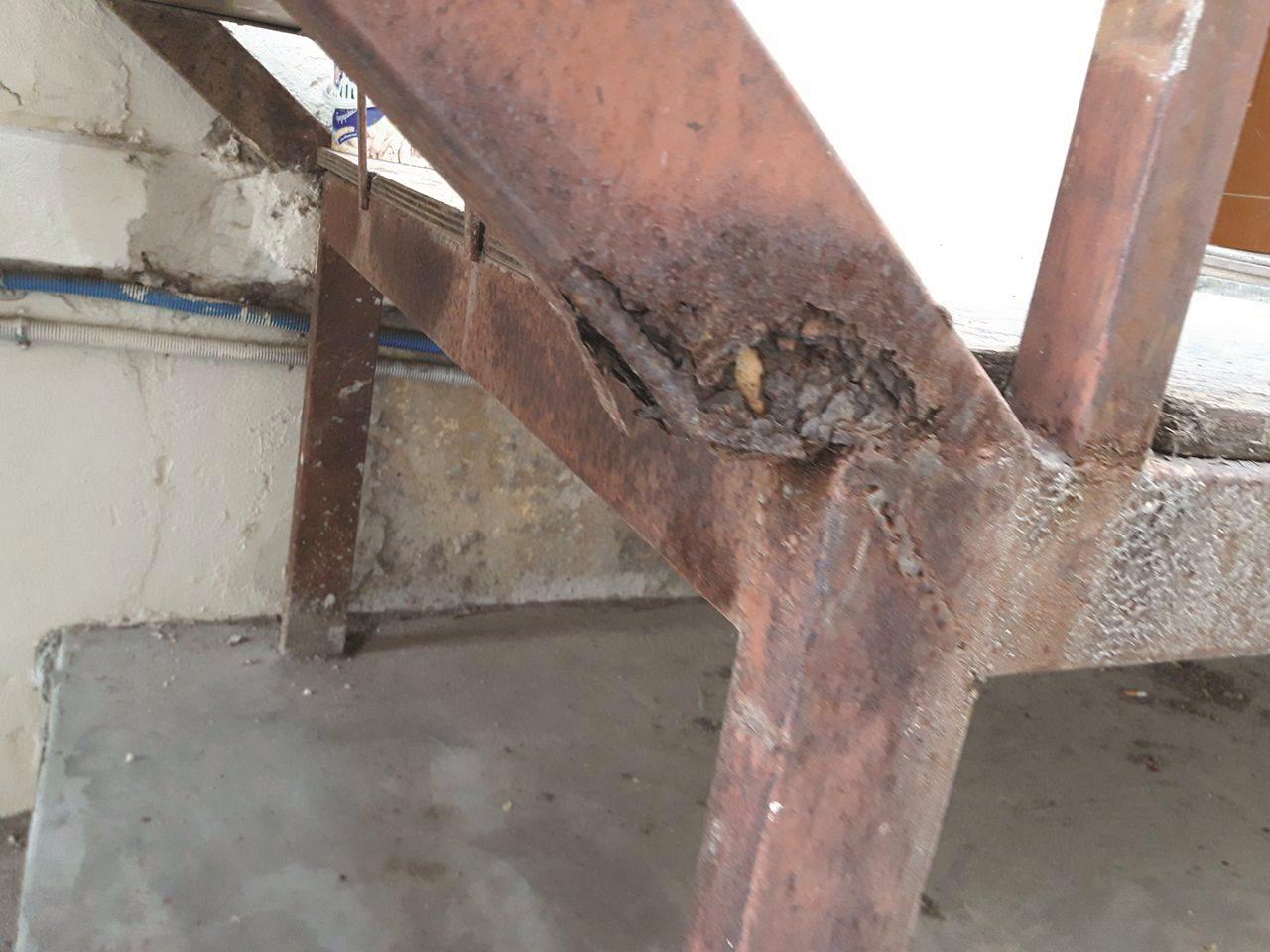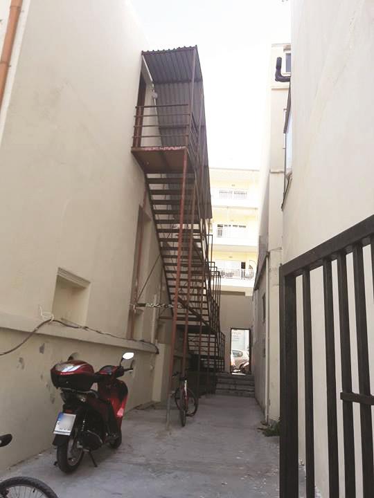 - Έχει εγκατασταθεί μια εξωτερική σκαλωσιά η οποία χρησιμοποιείται ως όδευση διαφυγής για τον πρώτο όροφο του κτιρίου . Η σκαλωσιά αυτή παρουσιάζει εμφανή σημάδια διάβρωσης και χρήζει άμεσης απομάκρυνσης.