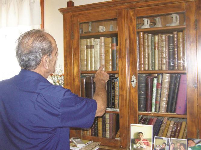 Τα βιβλία ασκούσαν μια περίεργη γοητεία στο διακεκριμένο ερευνητή μάλιστα ο ίδιος αφού ανέφερε ότι είχε κρατήσει όλα τα σχολικά βιβλία του, διηγήθηκε μια μικρή ιστορία… «Όταν ήμουν μαθητής στο Δεύτερο Δημοτικό στο Καμαράκι και ήρθε ο πόλεμος, πήγαμε στο χωριό της μητέρας μου, όπου ήταν πολύ δύσκολο και σπάνιο να βρεθεί χαρτί για να γράψουμε. Θυμάμαι ότι άνοιξα ένα παλιό σεντούκι κι εκεί μέσα βρήκα μια φυλλάδα, η οποία είχε άγραφα φύλλα τα οποία θα μου χρησίμευαν για να κάνω ασκήσεις στη ορθογραφία. Πρόσεξα τότε ότι η φυλλάδα αυτή περιείχε στα πρώτα της φύλλα σημειώσεις του παππού μου από το 1870 περίπου. Και ναι μεν χρησιμοποίησα τα άγραφα κομμάτια της, αλλά το υπόλοιπο, παρά το μικρό της ηλικίας μου το φύλαξα και το έχω μέχρι σήμερα».