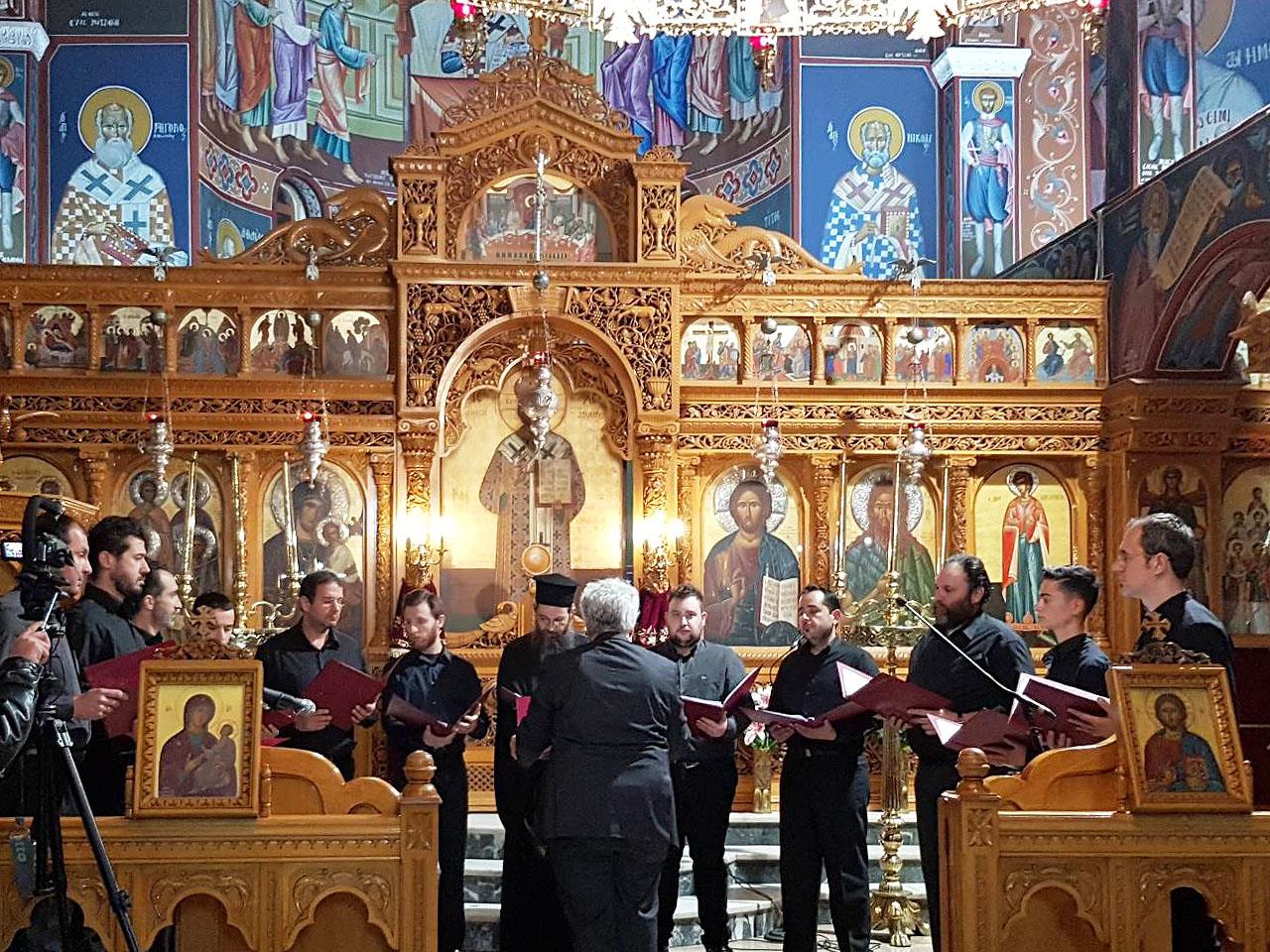 Ακολούθως, ο «Βυζαντινός Χορός Χανίων» υπό τη διεύθυνση του κ. Ιωάννου Καστρινάκη και η Χορωδία Παραδοσιακής Μουσικής «ΠΑΥΛΟΣ ΒΛΑΣΤΟΣ» υπό τη διεύθυνση κ. Αντωνίου Μιχελουδάκη ερμήνευσαν εκκλησιαστικούς ύμνους από το ΑΝΑΣΤΑΣΙΜΑΤΑΡΙΟ του κ. Νεραντζή και στο τέλος ο ίδιος ο Άρχων διηύθυνε και τους δύο Χορούς οι οποίοι έψαλαν από κοινού το Εωθινό Δοξαστικό «Ως επεσχάτων».