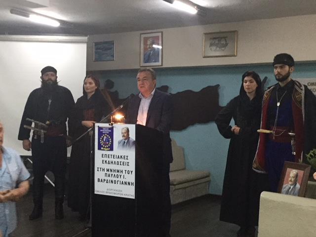 Η τιμητική εκδήλωση οργανώθηκε από τον Όμιλο Βρακοφόρων Κρήτης κι έγινε παρουσία εκπροσώπων αρχών, φορέων, μελών, συγγενών και φίλων της οικογένειας Βαρδινογιάννη, πολιτών του Ρεθύμνου, ενώ κεντρικός ομιλητής ήταν ο Περιφερειάρχης Κρήτης Σταύρος Αρναουτάκης.