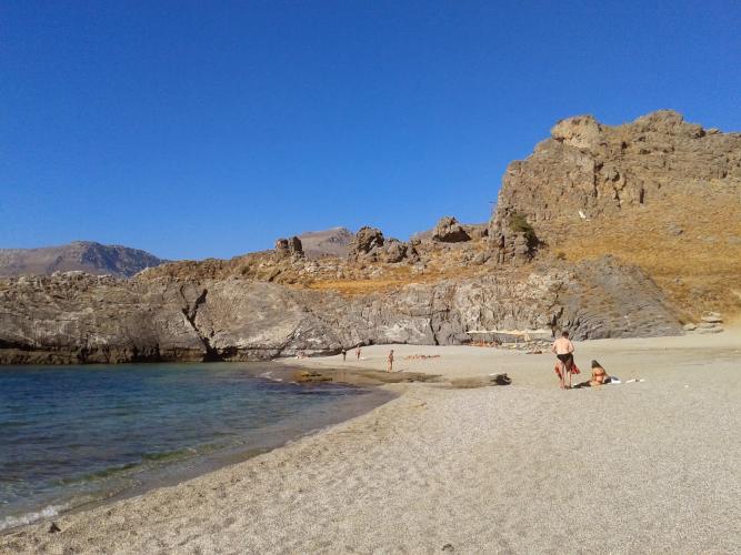 Ο ασφαλτοστρωμένος δρόμος σταματάει στην πρώτη παραλία της περιοχής, το Μεγάλο Αμμούδι ή απλώς Αμμούδι. Δεν είναι πλήρως οργανωμένη ,διαθέτει όμως ομπρέλες, ταβέρνες καθως επίσης και κάποια δωμάτια για την διαμονή σας στην περιοχή. Επίσης, στο Αμμούδι υπάρχει και μια σχολή scuba diving. Αποτελείται χοντρή λευκή άμμο και βραχώδη βυθό, ιδανικό για κατάδυση και εξερεύνηση του βυθού με τα έντονα πράσινα νερά. Δίπλα στην παραλία υπάρχουν πολλά αλμυρίκια, όπου μπορείτε να βρείτε σκιά και να κατασκηνώσετε.