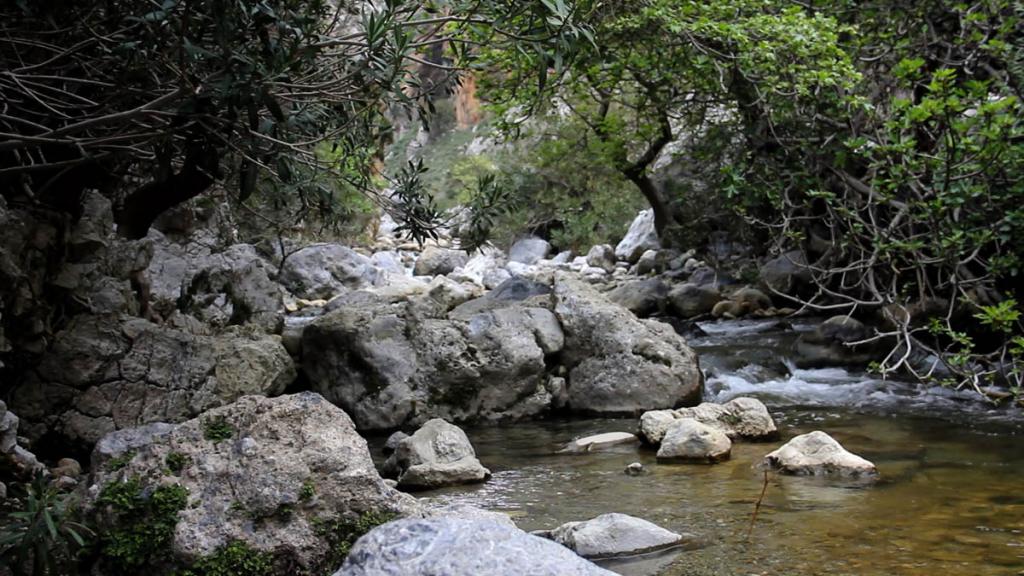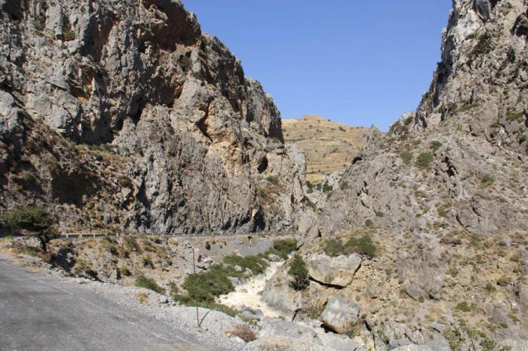 Στα μισά της διαδρομής, συναντά κανείς το δρόμο που περνάει μέσα από το φαράγγι με χώρο στάθμευσης για τα αυτοκίνητα και μονοπάτια που οδηγούν στο μικρό γραφικό εκκλησάκι του Αγίου Νικολάου. Η παράδοση λέει ότι μόλις ο άγιος άγγιξε το βράχο, αμέσως πετάχτηκε άφθονο νερό από τα σημεία που ακούμπησαν τα δάχτυλά του. Αυτές είναι οι πέντε πηγές του Κουρταλιώτη κοντά στο εκκλησάκι και αξίζει να κατέβει κανείς τα σκαλιά για να τις δει. Προς το τέλος του φαραγγιού, υπάρχει ένα σημείο που μοιάζει με τροπική λίμνη και έχει ονομαστεί η παραλία με τους φοίνικες, όπου μπορεί κανείς να κολυμπήσει στα πεντακάθαρα νερά.