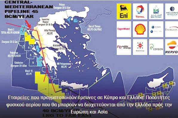 Ας υποθέσουμε ακόμα ότι οι ποσότητες φυσικού αερίου στο μπλοκ 10 (κόλπος Κυπαρισσίας – τα δικαιώματα έχει η κοινοπραξία ΕΛΠΕ-Edison) είναι 0,5 τρις Μ3 και στο μπλοκ 2 (δυτικά της Κέρκυρας – κοινοπραξία Total, Edison και ΕΛΠΕ) είναι 0,3 τρις Μ3. Με αυτά τα δεδομένα θα μπορούμε να εξάγουμε ετησίως προς την ΕΕ 45 δις Μ3 για τουλάχιστον 35 χρόνια (εικόνα 2). Η υπόλοιπη ποσότητα των 1,2 τρις Μ3, θα μας επιτρέπει να εξάγουμε άλλα 40 δις Μ3 ανά έτος και επί 30 χρόνια υπό μορφή υγροποιημένου φυσικού αερίου. Η υγροποίηση μπορεί να γίνεται στην Γαύδο και να εξάγεται με LNG πλοία σε όλο τον κόσμο. Σε αυτή τη λύση προσανατολίζονται οι ExxonMobil και Qatar Oil για το φυσικό αέριο της Κύπρου.»