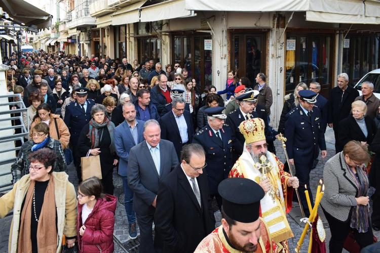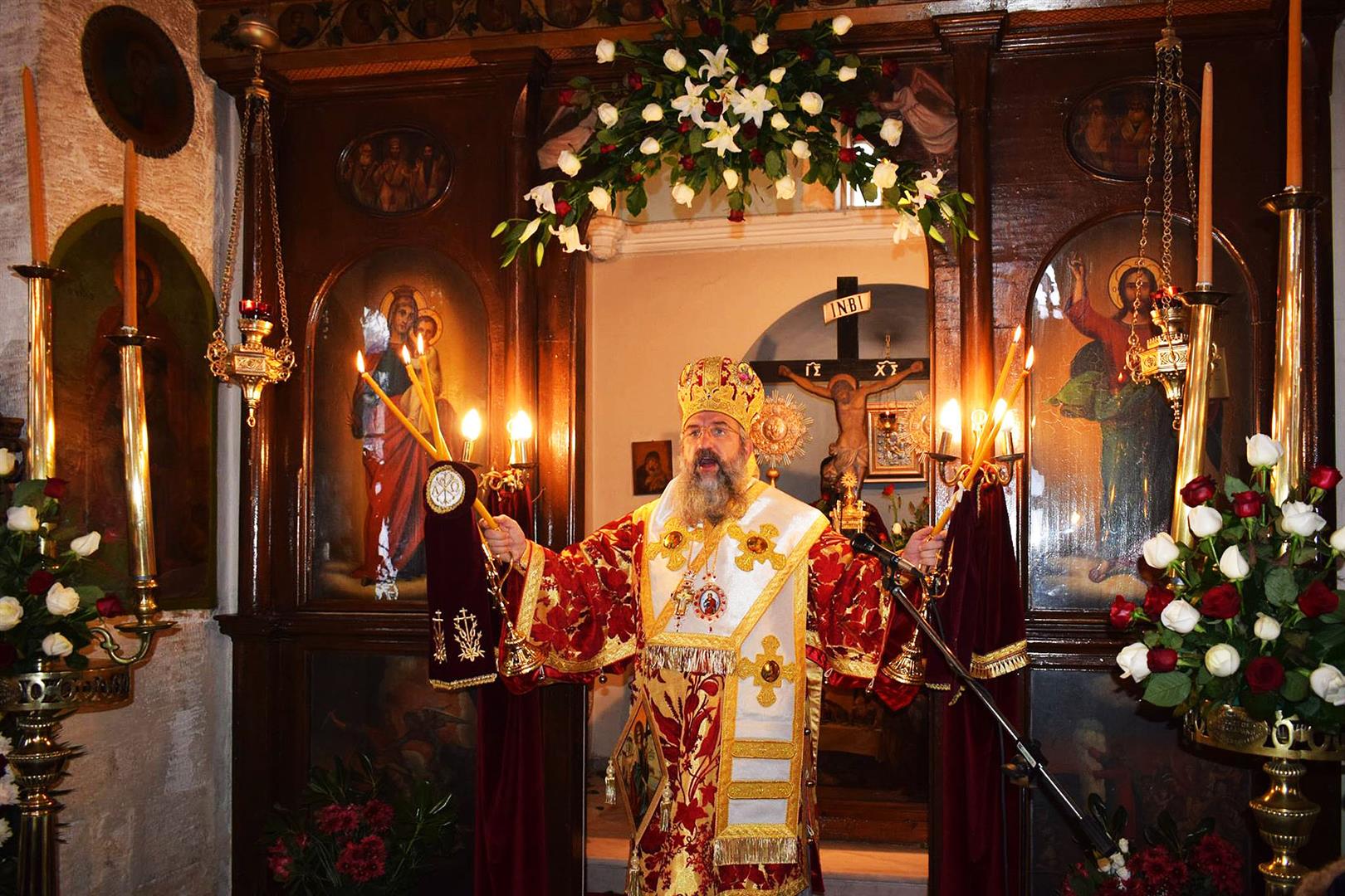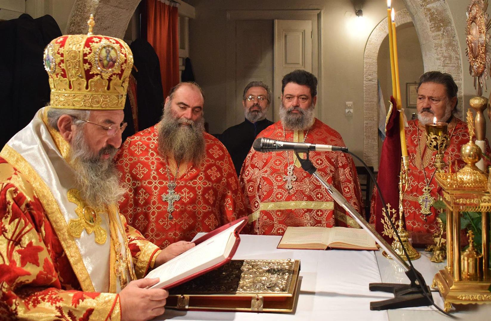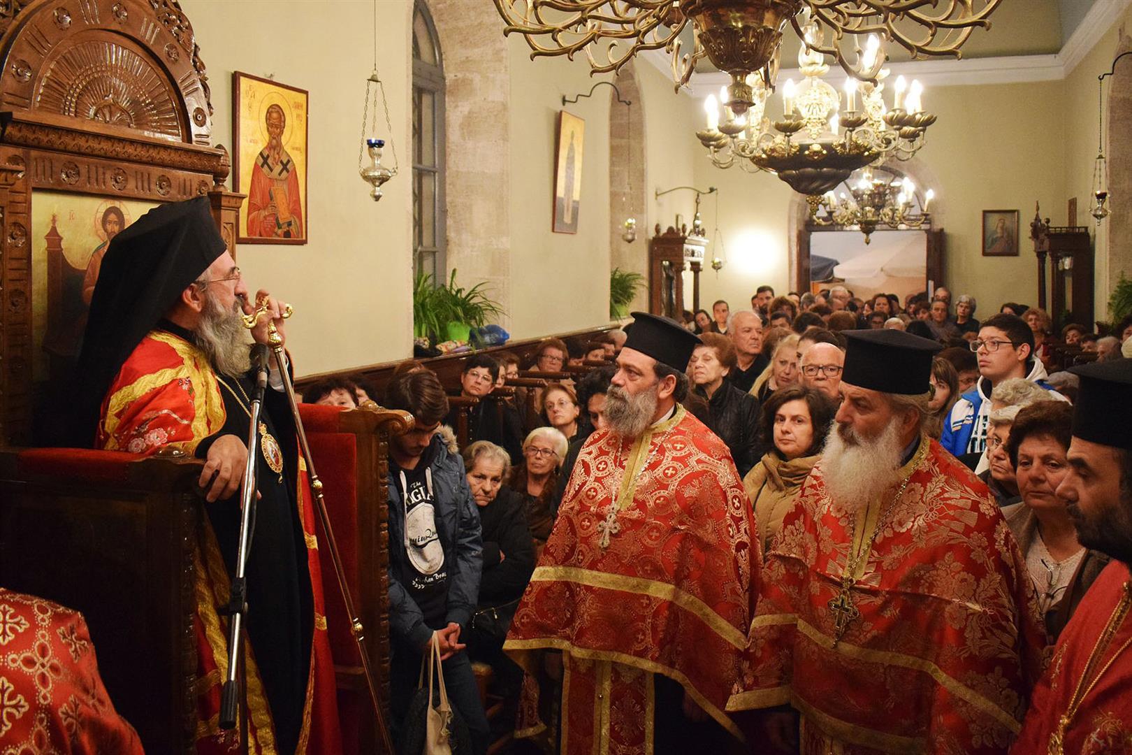 Το εσπέρας της 3ης Δεκεμβρίου 2018, ο Σεβ. Μητροπολίτης Ρεθύμνης και Αυλοποτάμου κ. Ευγένιος χοροστάτησε κατά τον Μέγα Εσπερινό, πλαισιούμενος από πολλούς Κληρικούς της Μητροπόλεώς μας, ενώ παρέστη συμπροσευχόμενος από του Ιερού Βήματος ο Σεβ. Μητροπολίτης Λάμπης, Συβρίτου και Σφακίων κ. Ειρηναίος. Στο τέλος του Εσπερινού ο Επίσκοπός μας κ. Ευγένιος ευχαρίστησε τον Σεβ. κ. Ειρηναίο για την παρουσία του και την αγάπη του προς την Τοπική μας Εκκλησία και, απευθυνόμενος στο πολυπληθές εκκλησίασμα, κάλεσε όλους να μιμηθούν την ευψυχία και την ομολογία της πίστεως, που επέδειξε η Αγία Βαρβάρα, απέναντι στα σύγχρονα είδωλα και, κυρίως, στο «αυτείδωλον» που διεκδικεί να ενθρονισθεί στην καρδιά του κάθε ανθρώπου, όταν επιλέγει την «αυτοθέωση» χωρίς τον Θεό.