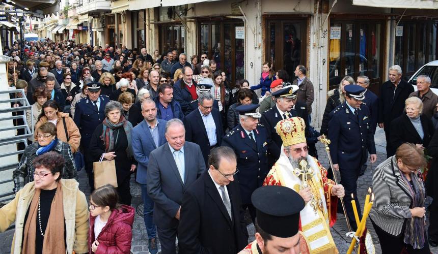 Μετά το πέρας της Θείας Λειτουργίας τελέσθηκε η Δοξολογία για την Επέτειο της Ένωσης της Κρήτης με την Μητέρα Ελλάδα και ακολούθησε η Λιτάνευση της Ιεράς Εικόνος και αποτμήματος του Ιερού Λειψάνου της Αγίας Μεγαλομάρτυρος Βαρβάρας, το οποίο είχε προσφέρει στο παρελθόν ο μακαριστός Μητροπολίτης Αυστρίας Μιχαήλ, με την συμμετοχή των πολιτικών, στρατιωτικών και αστυνομικών Αρχών της πόλεως, τιμητικού αγήματος του 547 Αερομεταφερόμενου Τάγματος Πεζικού, της Δημοτικής Φιλαρμονικής Ρεθύμνου, των Εθελοντών και Σαμαρειτών του Ελληνικού Ερυθρού Σταυρού και πλήθους πιστών.