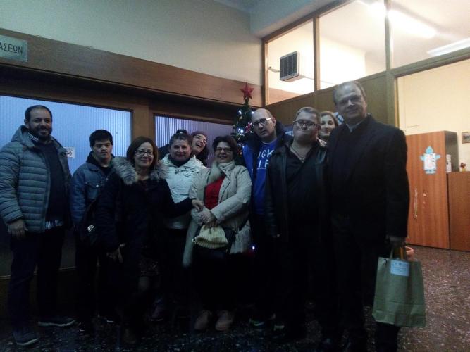 Το Σύλλογο "Αγάπη" με τους Εκπαιδευτές και τους μαθητές οι οποίοι αντάλλαξαν δώρα και ευχες με το Δήμαρχο αφου μας είπαν τα κάλαντα.