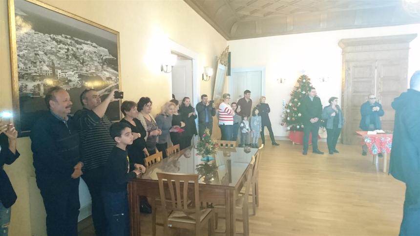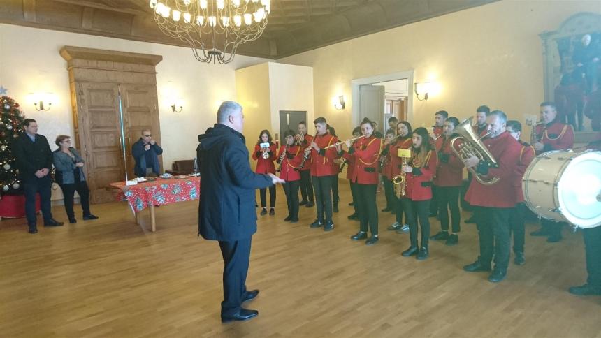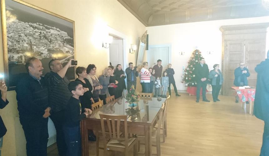 Την καθιερωμένη επίσκεψη στην έδρα της Περιφερειακής Ενότητας Ρεθύμνης για τα Κάλαντα της Πρωτοχρονιάς πραγματοποιήσαν σήμερα η Δημοτική Φιλαρμονική Ρεθύμνης, η χορωδία του 547 Α/ΜΤ.Π και o Πολιτιστικός Σύλλογος Γερανίου και αντάλλαξαν ευχές για τη νέα χρονιά με την Αντιπεριφερειάρχη Ρεθύμνης, κα Μαρία Λιονή και το προσωπικό της ΠΕΡ.