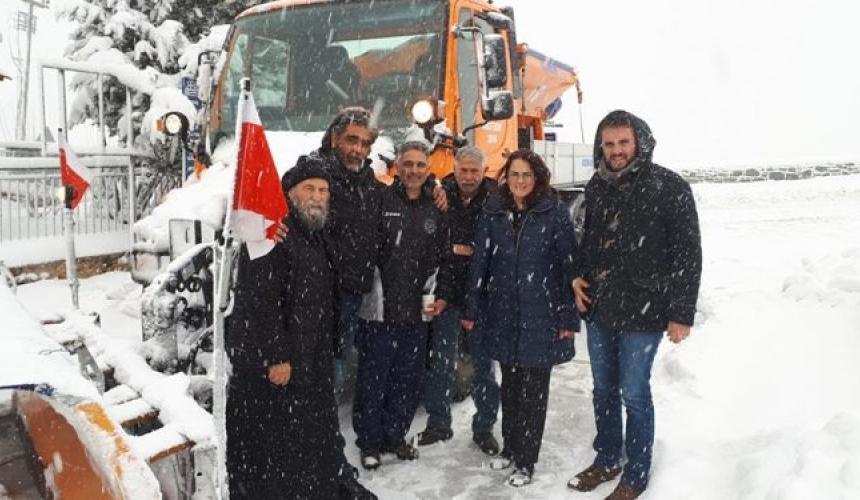Με τη συνοδεία εκχιονιστικών μηχανημάτων έγινε η αλλαγή βάρδιας των γιατρών και διασωστών στο κέντρο Υγείας Ανώγειων.