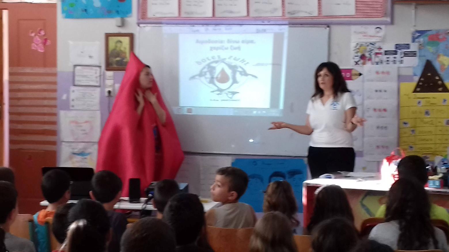 Οι κυρίες Δεληβελιώτη Κατερίνα και Μαυράκη Δέσποινα, δασκάλες και μέλη του Συλλόγου «Δότες Ζωής», επισκέφτηκαν δημοτικά σχολεία και λύκεια του νομού μας. Μέσω διαδραστικής μάθησης αλλά και με την πολύτιμη βοήθεια του «Τάκη Αιματάκη», μασκότ της ομάδας, οι μαθητές μας είχαν την ευκαιρία: