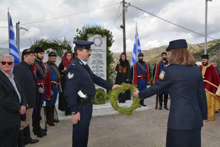Ο Όμιλος Βρακοφόρων με την σεμνή αλλά επιβλητική του παρουσία σαν ένοπλο σώμα, σκόρπισε ρίγη συγκίνησης, ενώ μετά την δέηση και την κατάθεση στεφάνων μπροστά στο ηρώο χόρεψαν δυο λεβέντικους χορούς με τον Φραγκιό Παπαδογιαννάκη (λύρα) και τον Στέλιο Στελιουδάκη (λαγούτο). Ακολούθησε παραδοσιακό γεύμα στην αίθουσα του πολιτιστικού συλλόγου του χωριού προσφορά του δήμου Λάμπης, ενώ την εξυπηρέτηση ανέλαβε η ταβέρνα ‘’Σιδεράς’’ με τον Δημήτρη Σηφάκη και την οικογένεια του να ικανοποιεί πλήρως όσους παρευρέθηκαν Τέλος την εκδήλωση κάλυψε τηλεοπτικά ο Στέλιος Πατακός (Πατακοστελής) και θα προβληθεί στο κανάλι του και σε περιφερειακά κανάλια της χώρας την Κυριακή στις 21.00.
