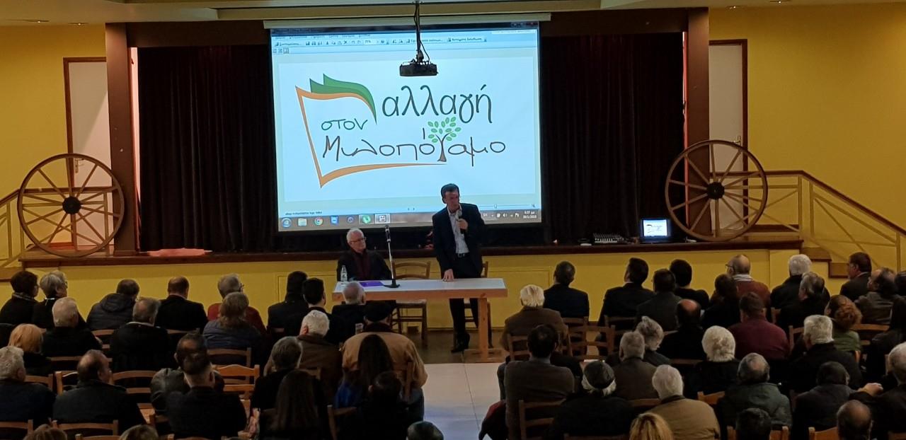 Στην ομιλία του ο υποψήφιος δήμαρχος ανέλυσε το όραμα και το σχέδιο του για το δήμο δίνοντας έμφαση στην ανάγκη να αλλάξει η εικόνα του δήμου και η νοοτροπία που κυριαρχεί μέσα από την αλλαγή προσώπων και την εφαρμογή νέων ιδεών και πρακτικών . Άσκησε κριτική στην απερχόμενη δημοτική αρχή για καθεστωτική νοοτροπία και τόνισε ότι θα ενισχύσει τα δίκτυα μεταξύ των παραγωγικών τομέων της τοπικής οικονομίας. Έδωσε έμφαση στην αναγκαιότητα του χωροταξικού σχεδιασμού ενώ αναφέρθηκε στην αξιοποίηση ευρωπαϊκών προγραμμάτων για την εξεύρεση πόρων.