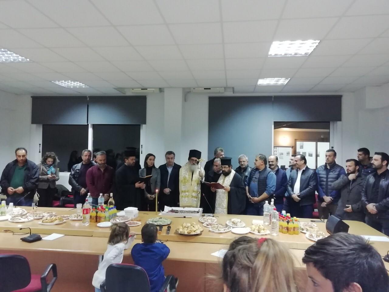 Νωρίτερα προηγήθηκε Αγιασμός που τέλεσε ο Μητροπολίτης Γορτύνης και Αρκαδίας κκ Μακάριος, ο οποίος μετά τις ευχές που απεύθυνε προς όλους αναφερόμενος στα τοπικά και εκκλησιαστικά θέματα, ευχαρίστησε τον Περιφερειάρχη για την στήριξη. Παράλληλα έγινε αναφορά για την βοήθεια από την Περιφέρεια αναστήλωσης του μικρού Ναού του Αγ. Τίτου, όπως και για το νέο Κέντρο Υγείας , ενώ για τις αθλητικές υποδομές του Τυμπακίου ο Περιφερειάρχης τόνισε την θέληση της Περιφέρειας στην υλοποίηση κλειστού γυμναστηρίου.