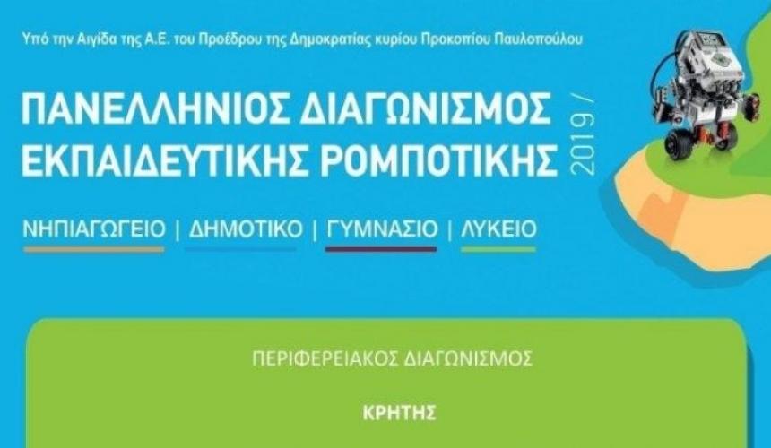 Ο μη κερδοσκοπικός Οργανισμός Εκπαιδευτικής Ρομποτικής & Επιστήμης «WRO-HELLAS» σε συνεργασία με την Περιφέρεια Κρήτης, τον Δήμο Ρεθύμνου, την Περιφερειακή Διεύθυνση Εκπαίδευσης Κρήτης και την Περιφερειακή Ενότητα Ρεθύμνου διοργανώνουν τον Περιφερειακό Διαγωνισμό Εκπαιδευτικής Ρομποτικής της Περιφέρειας Κρήτης για μαθητές Δημοτικών Σχολείων, Γυμνασίων και Λυκείων, ο οποίος θα διεξαχθεί στο Ρέθυμνο το Σάββατο 09 Φεβρουαρίου 2019 και ώρα προσέλευσης 10:00 π.μ. στο Κλειστό Γυμναστήριο Μελίνα Μερκούρη.