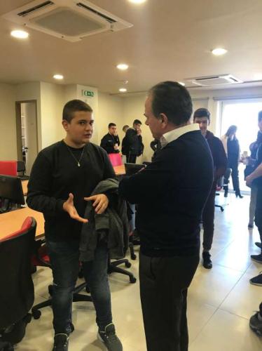Οι μαθητές του Πειραματικού Λυκείου της πόλης μας, συνοδευόμενοι από τους εκπαιδευτικούς τους, ζήτησαν αυτή την ενημερωτική συνάντηση, με αφορμή ένα εκπαιδευτικό περιβαλλοντικό πρόγραμμα που υλοποιούν στο σχολείο τους με αντικείμενο τη βιώσιμη κινητικότητα. Η συνεργασία εξελίχθηκε σε άψογο κλίμα και, πέραν του ενημερωτικού χαρακτήρα της, δόθηκε η ευκαιρία ενός γόνιμου διαλόγου στη διάρκεια του οποίου, τα παιδιά απηύθυναν πολλές ερωτήσεις στο Δήμαρχο, του εξέθεσαν τους προβληματισμούς τους σε ότι αφορά την κινητικότητα και την ποιότητα ζωής στην πόλη και του κατέθεσαν τις σκέψεις τους για το μέλλον και προτάσεις για το πώς οραματίζονται την πόλη που ζουν.