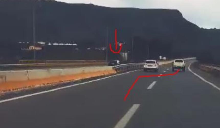 Στο ίδιο βίντεο άλλος οδηγός ενός αγροτικού 4χ4 τρέχοντας με ιλιγγιώδη ταχύτητα κάνοντας ζιγκ-ζαγκ προσπέρασε το προπορευόμενο όχημα παράνομα από δεξιά αλλάζοντας λωρίδα κυκλοφορίας, θέτοντας σε κίνδυνο τη ζωή οδηγών και επιβατών.Έτσι σημειώνονται τα ατυχήματα.Τελικά μυαλό δεν βάζουμε.