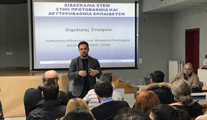 Ξεκίνησαν, από το Ρέθυμνο, τα επιμορφωτικά σεμινάρια για τη διδασκαλία των STEM (Science, Technology, Engineering and Mathematics) στην Πρωτοβάθμια και Δευτεροβάθμια Εκπαίδευση, τα οποία θα συνεχιστούν την Παρασκευή 1 Μαρτίου στο Ηράκλειο, αμφιθέατρο του ΠΕΚΕΣ στον Εσταυρωμένο και τη Δευτέρα 4 Μαρτίου στο Πνευματικό Κέντρο Χανίων.