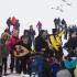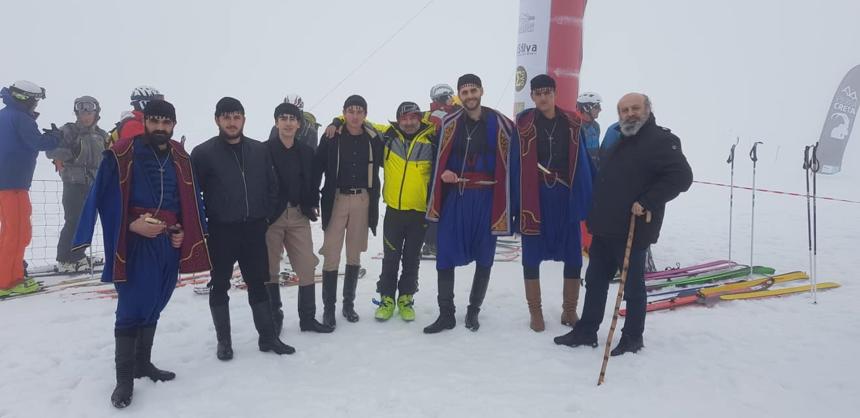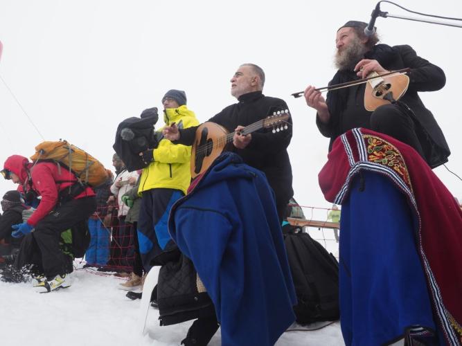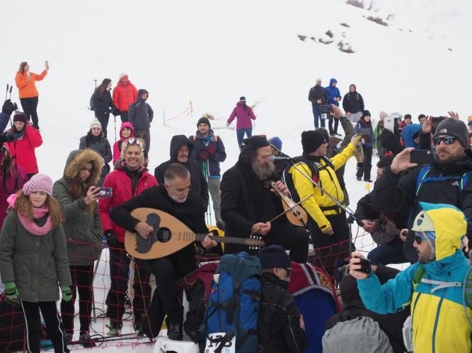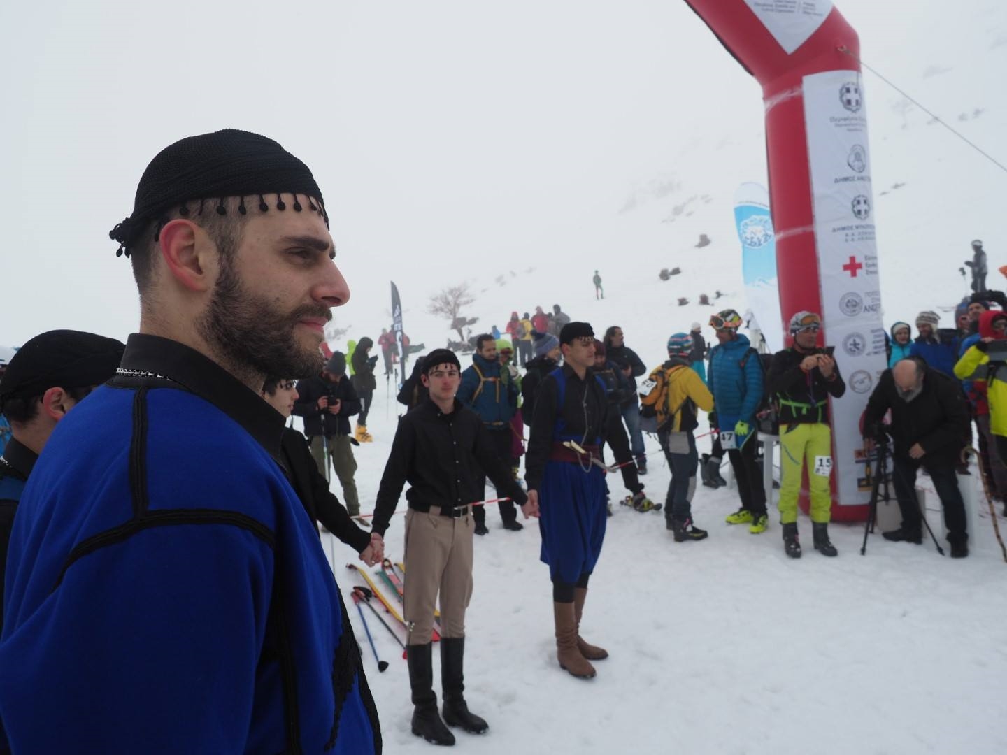 Βέβαια και το πρωί ο αγώνας ξεκίνησε με παραδοσιακή μουσική και χορούς μέσα στα….χιόνια και στην ομίχλη.