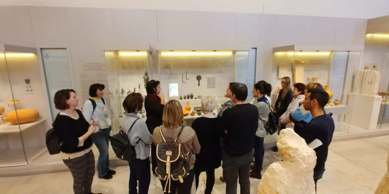 Επίσκεψη στο Αρχαιολογικό Μουσείο Ρεθύμνου πραγματοποίησαν οι εκπαιδευόμενοι του τμήματος Προχωρημένων και του τμήματος Αρχαρίων, στις 7 και 13 Φεβρουαρίου 2019 αντίστοιχα. Τους επισκέπτες ξενάγησε στην προσωρινή έκθεση του μουσείου που φιλοξενείται στον χώρο του Αγίου Φραγκίσκου, η Αρχαιολόγος κυρία Ειρήνη Γαβριλάκη. Με μεγάλο ενδιαφέρον και όσα γλωσσικά εργαλεία διέθεταν, οι εκπαιδευόμενοι ακολούθησαν τη διαχρονική διαδρομή στην οποία τους οδήγησε παραστατικά η κυρία Γαβριλάκη, μέσα από παλαιότερα και σύγχρονα ανασκαφικά ευρήματα του Νομού Ρεθύμνου, με αφετηρία την εποχή του λίθου, την εποχή του χαλκού, του σιδήρου, διερχόμενοι την αρχαϊκή, την κλασσική, την ελληνιστική, έως και τη ρωμαϊκή περίοδο του τόπου.