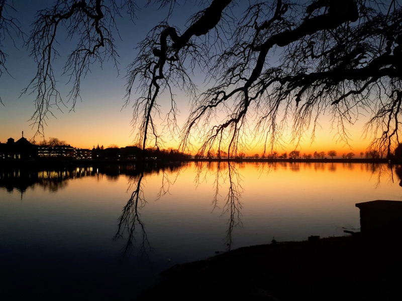 Μετά από αυτή την επίσκεψη άρχισε το ταξίδι για το Στρασβούργο. Στα μέσα της διαδρομής κάναμε μια στάση στη λίμνη Κωνσταντία (Konstanz-Bodensee) στην πόλη Lindau. Η άφιξή μας εκεί, αργά το απόγευμα, ήταν μια αποκάλυψη. Ένα γαλήνιο τοπίο, δίπλα στα ήσυχα νερά, η γέφυρα που ενώνει τις δύο όχθες και τα χρώματα του δειλινού μάς υπενθύμισαν το μεγαλείο της φύσης! Δε θέλαμε να φύγουμε, συνεχίσαμε, όμως, το ταξίδι και φτάσαμε, βράδυ πια, στο Στρασβούργο.