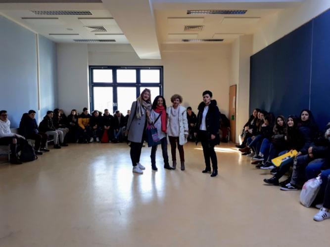 Λίγο μετά την επιστροφή μας, ετοιμαστήκαμε για μια νυκτερινή βόλτα στο γραφικό Στρασβούργο. Πρώτα επισκεφθήκαμε το πανέμορφο Bistrot Kalimera της αξιαγάπητης Ελληνίδας Νικόλ Σταύρου, η οποία μας υποδέχθηκε με τη γνωστή ελληνική φιλοξενία και ένα τεράστιο χαμόγελο. Βράδυ πια, και παρά το ψιλόβροχο, περπατήσαμε στους φωτισμένους δρόμους της πόλης και καταλήξαμε στην πλατεία, όπου δεσπόζει ο ύψους 149 μ. γοτθικός Καθεδρικός Ναός του Στρασβούργου, περιτριγυρισμένος από τον ποταμό Ιλλ. Ο ναός ολοκληρώθηκε το 1439 και ήταν το ψηλότερο κτίριο στον κόσμο μέχρι το 1847. Εκεί, και παρά το γεγονός ότι το ψιλόβροχο άρχισε αργά αλλά σταθερά να εξελίσσεται σε βροχή, έγινε ένα μικρό θαύμα. Εμείς οι μαθητές του 3ου Γυμνασίου Ρεθύμνου συναντήσαμε μαθητές από μια άλλη χώρα και, ως διά μαγείας, γνωριστήκαμε, μιλήσαμε, κάναμε κύκλο και χορέψαμε δικούς τους και δικούς μας χορούς! Ήταν μια πολύ ζεστή και συγκινητική εμπειρία, που θα μας μείνει αξέχαστη. Ήταν ένα μάθημα ζωής. Ήταν μια απόδειξη ότι όλοι οι άνθρωποι μπορεί να είναι ενωμένοι, ανεξαρτήτως γλώσσας, καταγωγής, θρησκείας... Ήταν ένα μάθημα ενότητας, αγάπης και αλληλεγγύης. Ήταν ένα παράδειγμα προς μίμηση, με πολλούς αποδέκτες. Μετά από λίγο αρχίσαμε να τρέχουμε… Το ψιλόβροχο είχε γίνει βροχή!