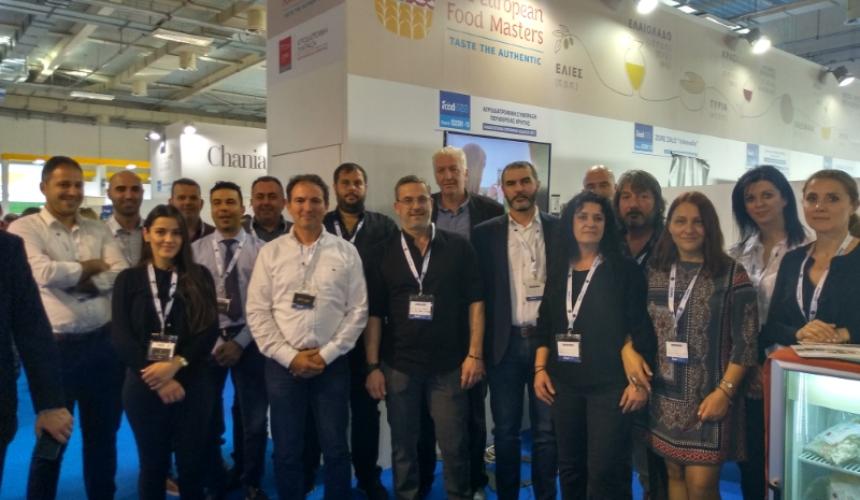 Στο πλαίσιο υλοποίησης του Ευρωπαϊκού προγράμματος «The European Food Masters -Taste the Authentic» που χρηματοδοτείται από την Ευρωπαϊκή Ένωση, η Αγροδιατροφική Σύμπραξη της Περιφέρειας Κρήτης, έδωσε τη δυνατότητα σε 15 επιχειρήσεις – μέλη της και από τις τέσσερις Περιφερειακές Ενότητες του νησιού, να συμμετέχουν με πιστοποιημένα προϊόντα Προστατευόμενης Ονομασίας Προέλευσης, Προστατευόμενης Γεωγραφικής Ένδειξης και Βιολογικά όπως ελαιόλαδο, ελιές, βότανα, τυροκομικά, μέλι, αβοκάντο, εσπεριδοειδή, σταφίδα, κρασί, κρεατοσκευάσματα και ρακή, προϊόντα, που γεύτηκαν εκατοντάδες εμπορικοί επισκέπτες της έκθεσης.