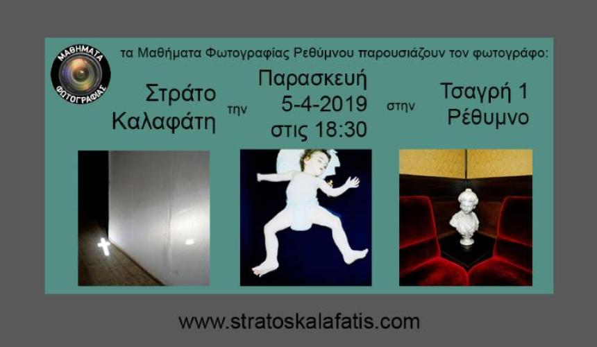 Καλεσμένος ο Στράτος Καλαφάτης από τα Μαθήματα Φωτογραφίας Ρεθύμνου θα παρουσιάσει την φωτογραφική του πορεία σε μια διάλεξη την Παρασκευή 5-4-2019 στις 18:30 στην Τσαγρή 1 στο Ρέθυμνο.