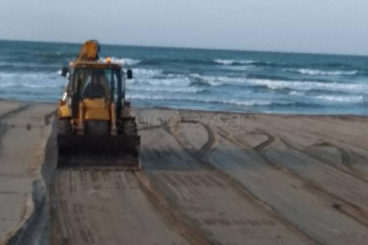 Εκεί, μπουλντόζες έχουν αναλάβει το μάζεμα κι έπειτα το «στρώσιμο» της παραλίας, παραδίδοντάς την σε ιδανική κατάσταση και έτοιμη προς χρήση για την θερινή περίοδο.
