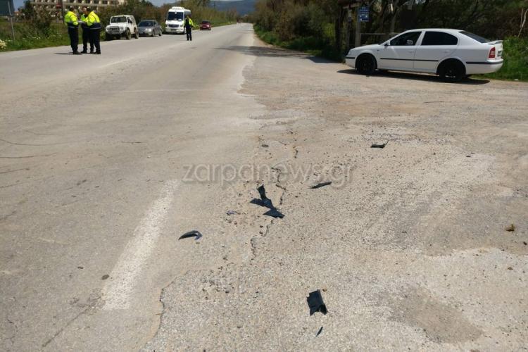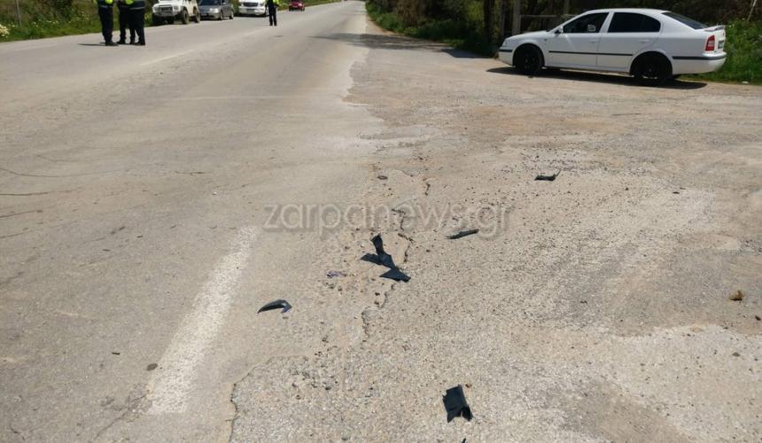 Υπό αδιευκρίνιστες συνθήκες, μηχανή συγκρούστηκε με αυτοκίνητο με αποτέλεσμα ο οδηγός να καταλήξει στο οδόστρωμα και η μηχανή να εκσφεντονιστεί αρκετά μέτρα μακρυά και να καταλήξει σε παρακείμενο χωράφι.