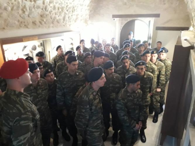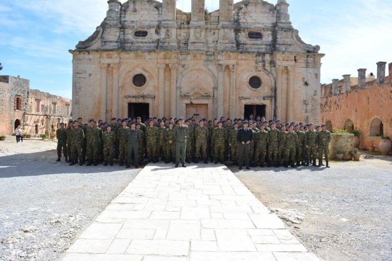 Μία ιδιαίτερα εποικοδομητική επίσκεψη, πραγματοποιήθηκε την περασμένη Πέμπτη 11 Απριλίου στο Στρατιωτικό Μουσείο Χρωμοναστηρίου, από την Σχολή Εφέδρων Αξιωματικών Πεζικού (ΣΕΑΠ) που εδρεύει στο Ηράκλειο. Η επίσκεψη πραγματοποιήθηκε στο πλαίσιο του εκπαιδευτικού προγράμματος των υποψηφίων εφέδρ. αξιωματικών της Σχολής και στέφθηκε από μεγάλη επιτυχία καθώς κράτησε αμείωτο το ενδιαφέρον τους. Οι αυριανοί έφεδροι αξιωματικοί, είχαν την ευκαιρία να ενημερωθούν με λεπτομέρεια από το προσωπικό του μουσείου, για τα σημαντικότερα πολεμικά γεγονότα που καθόρισαν την νεώτερη ελληνική ιστορία, ενώ ιδιαίτερο ενδιαφέρον έδειξαν για την πτέρυγα με την ιστορία και τα κειμήλια της ΣΕΑΠ που έχει το μουσείο. Τους μαθητές συνόδευαν αξιωματικοί της σχολής καθώς και ό ίδιος ο διοικητης της ΣΕΑΠ, Ταξίαρχος κ. Βασίλειος Βασιλειάδης, ενώ στη συνέχεια επισκέφθηκαν και άλλες ιστορικές περιοχές του νησιού όπως η Ι. Μ Αρκαδίου. Η ΣΕΑΠ έχει μακραίωνη ιστορία που ξεκινά ήδη από το έτος 1887 και τέτοιες επισκέψεις κρίνονται ιδιαίτερα σημαντικές για την επιμόρφωση των μελλοντικών εφέδρων αξιωματικών μας.