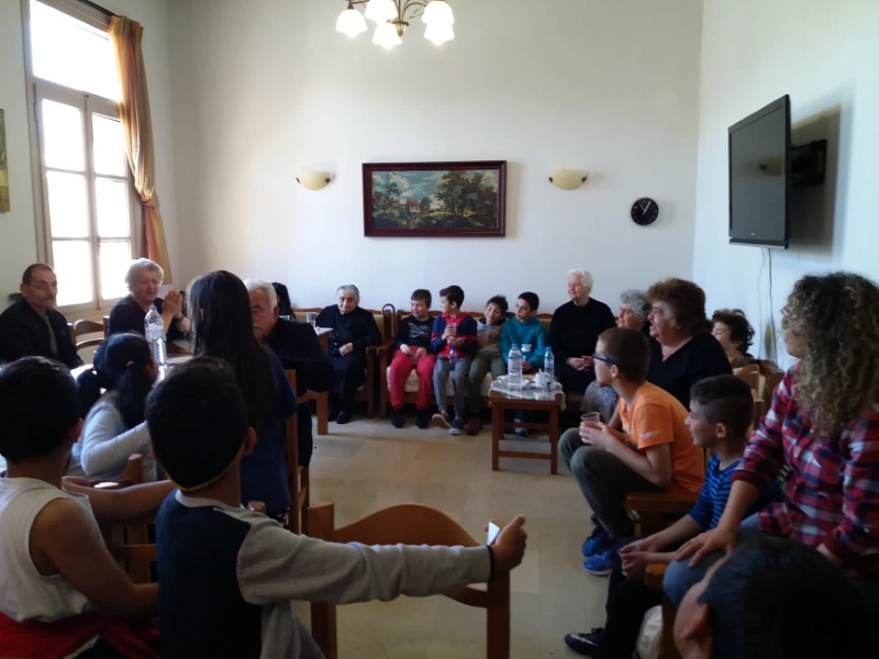 Σκοπός της δράσης είναι η διαγενεακή σύνδεση ηλικιωμένων και μαθητών καθώς και η συλλογή σχολικών ειδών που θα σταλούν στο Κέντρο Στέγασης Μεταναστών της Μαλακάσας για τις ανάγκες των παιδιών που φοιτούν στο νηπιαγωγείο εντός της δομής. Στα πλαίσια της συγκεκριμένης δράσης, υποδεχθήκαμε σήμερα Τετάρτη 17/4/2019 τα δύο τμήματα της Τετάρτης Δημοτικού του 1ου Δημοτικού Σχολείου Ρεθύμνου μαζί με τους εκπαιδευτικούς τους στο χώρο του ΚΗΦΗ στην Πλατεία Μικρασιατών. Η συνύπαρξη παιδιών και ηλικιωμένων ήταν ιδιαίτερα ζεστή και ευχάριστη. Τραγούδησαν, είπαν ιστορίες και αινίγματα, αντάλλαξαν πληροφορίες για τους τόπους καταγωγής τους και το οικογενειακό τους περιβάλλον και, κυρίως, προσέφεραν σχολικά είδη και λοιπό σχετικό υλικό που συνέλεξαν για να αποσταλθεί στα μικρά παιδιά των μεταναστών στο Κέντρο Στέγασης Μεταναστών της Μαλακάσας.