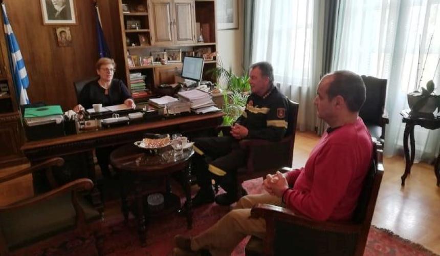 Την Αντιπεριφερειάρχη Ρεθύμνης, κα Μαρία Λιονή, επισκέφτηκε σήμερα ο νέος Διοικητής της Πυροσβεστικής Υπηρεσίας Ρεθύμνου, Πύραρχος, κ. Παναγιώτης Καράμπελας στο πλαίσιο της ανάληψης των καθηκόντων του.