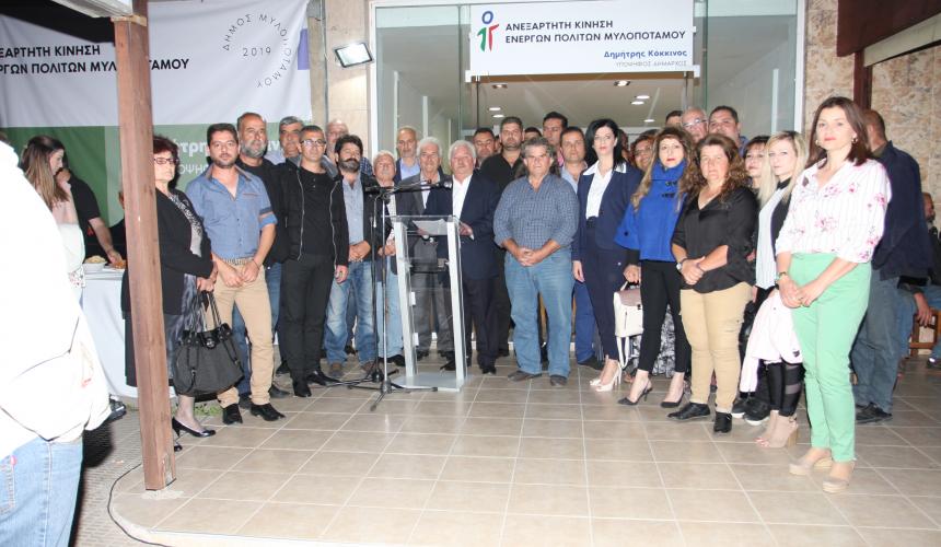 Παρουσία πλήθους κόσμου πραγματοποιήθηκαν χθες Παρασκευή 3 Μαίου στο Πέραμα, τα εγκαίνια του Εκλογικού Κέντρου του συνδυασμού «Ανεξάρτητη Κίνηση Ενεργών Πολιτών Μυλοποτάμου» με επικεφαλής τον σημερινό και υποψήφιο Δήμαρχο Δήμου Μυλοποτάμου κ. Δημήτρη Κόκκινο.