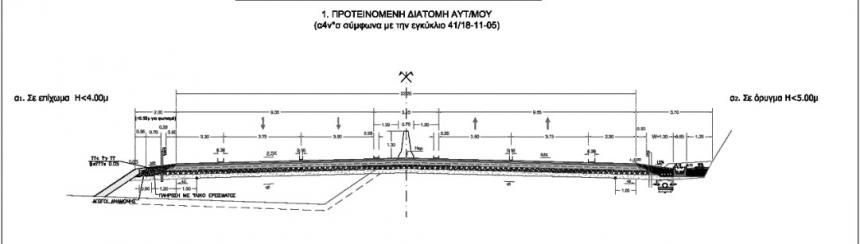 Σύμφωνα με τις ΟΜΟΕ-Δ και δεδομένου ότι η οδός συνδέει Περιφερειακές Ενότητες (Νομούς), αυτή κατατάσσεται στην κατηγορία οδών ΑII, δηλαδή η επιτρεπόμενη ταχύτητά της μπορεί να είναι Vεπ ≤ 110 km/h.Η απαίτηση για σχεδιασμό του νέου οδικού άξονα με ταχύτητα μελέτης 100 km/h, σύμφωνα με τις ισχύουσες ΟΜΟΕ-Δ, καλύπτεται με την εφαρμογή της τυπικής διατομής β4ν*.