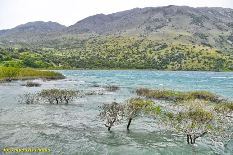 Ο αέρας, όπως μπορείτε να δείτε και από τις φωτογραφίες που ανάρτησε ο Χανιώτης φωτογράφος Παύλος Μπουζάκης σήκωσε κύματα, με τα νερά να “πνίγουν” ακόμα και τα δέντρα που βρίσκονται κοντά στην ακτή της λίμνης.