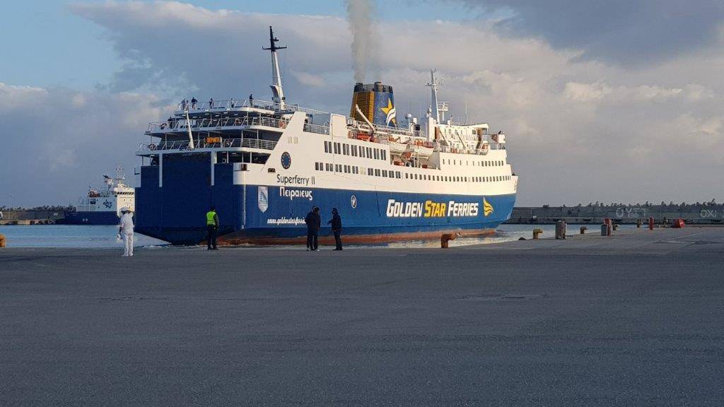 - Το Ε/Γ-Ο/Γ SUPERFERRY II της εταιρείας GOLDEN STAR FERRIES εκτελώντας το τακτικό του δρομολόγιο, με ώρα απόπλου από το λιμάνι μας 07:15 και εκτιμώμενη ώρα επιστροφής στις 21:30, εξυπηρετώντας πλέον των επιβατών και Φ/Γ και Ι/Χ οχήματα.