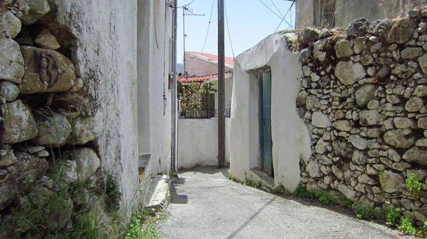 Τα στενά πλακόστρωτα καλντερίμια που φαντάζουν με λαβύρινθο οδηγούν στην πλατεία και την είσοδο του παραδοσιακού χωριού.