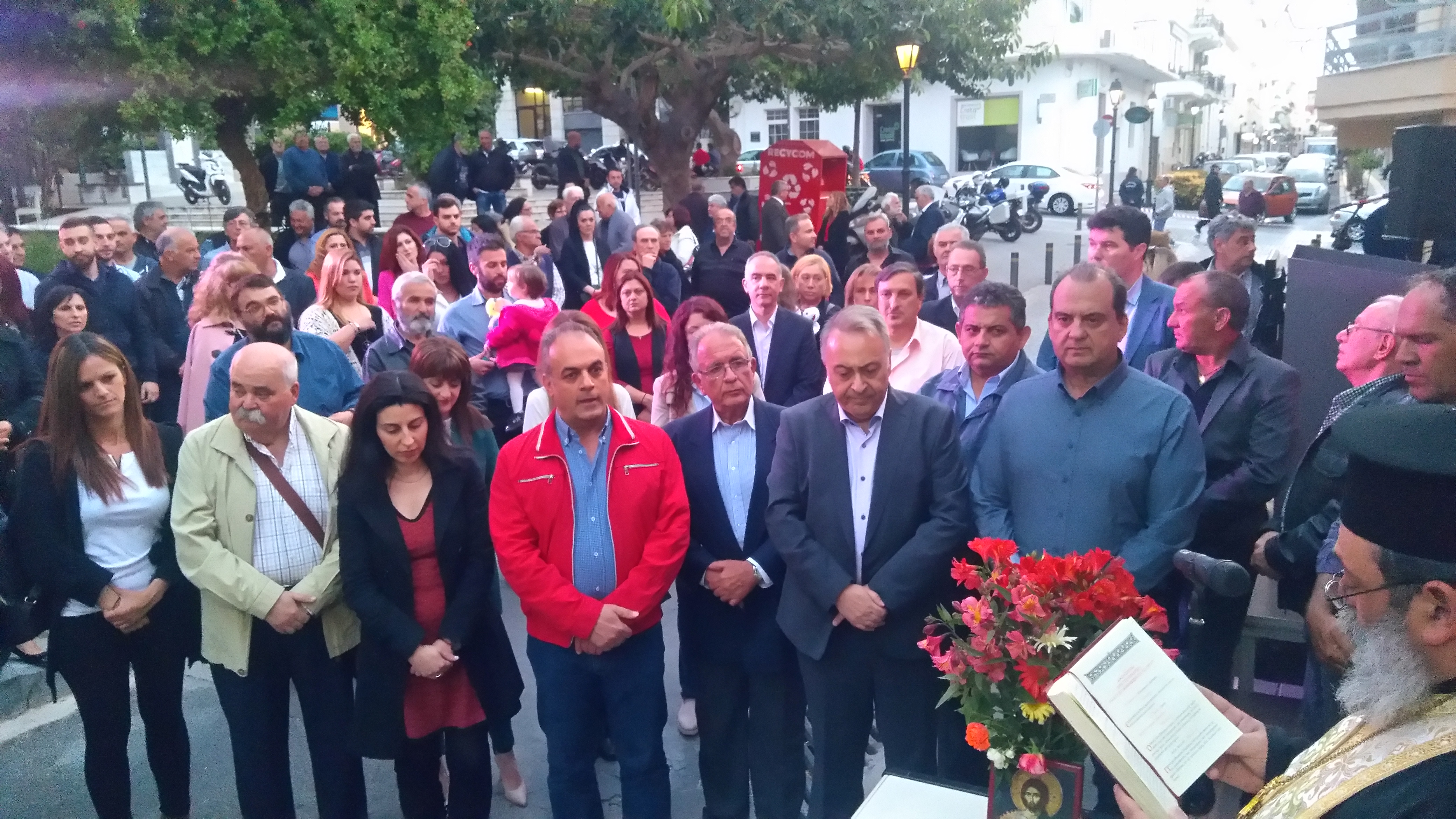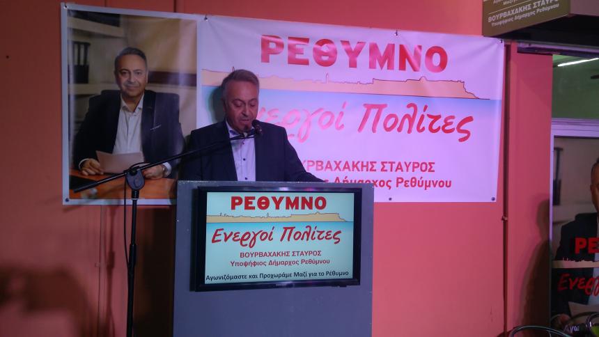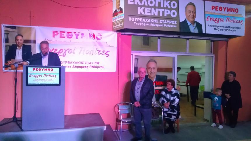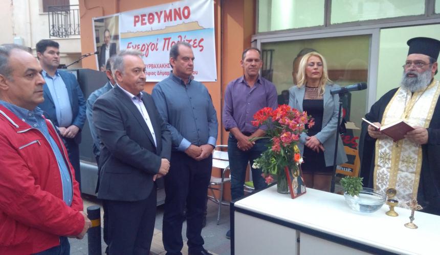 Με τον καθιερωμένο Αγιασμό, τον οποίο τέλεσε ο Γενικός Αρχιερατικός Επίτροπος της Ι.Μ. Ρεθύμνης και Αυλοποτάμου, Πρωτοπρεσβύτερος π. Νικόλαος Νικηφόρος, και με ομιλία του υποψηφίου δημάρχου Ρεθύμνου κ. Σταύρου Βουρβαχάκη, πραγματοποιήθηκαν το απόγευμα της Τετάρτης τα εγκαίνια του εκλογικού κέντρου του συνδυασμού "Ρέθυμνο - Ενεργοί Πολίτες".