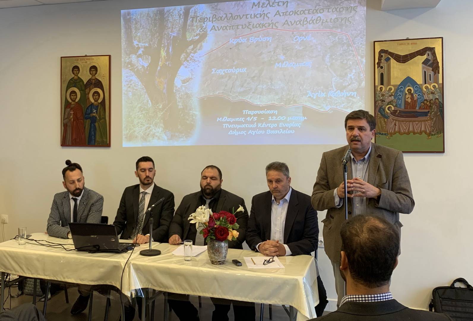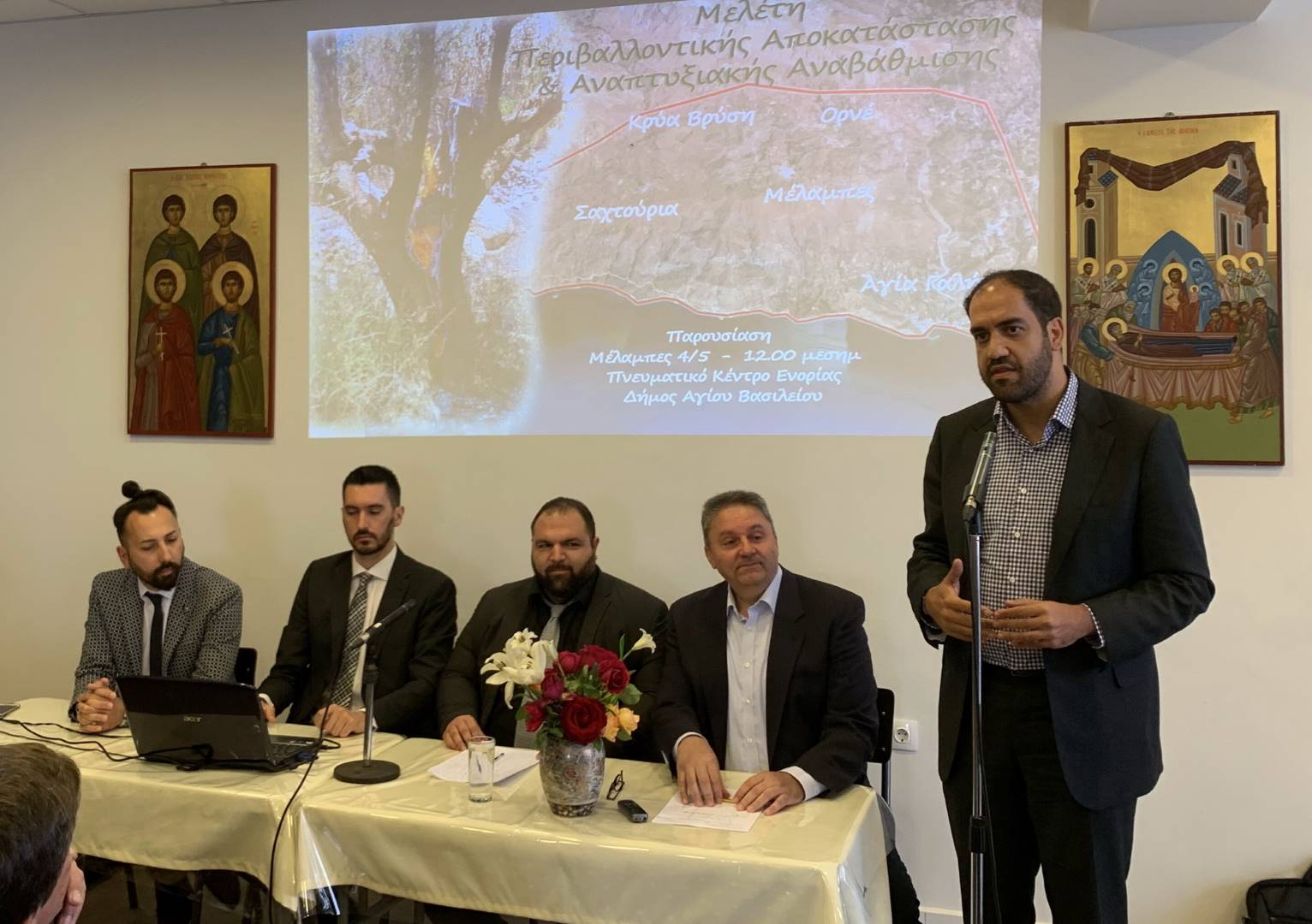 Στην παρουσίαση της μελέτης παρευρέθηκε ο Υπουργός Υγείας Ξανθός Ανδρέας, ο βουλευτής Ρεθύμνου της Νέας Δημοκρατίας Κεφαλλογιάννης Ιωάννης, η αντιπεριφερειάρχης Λιονή Μαρία, ο Δήμαρχος Αγίου Βασιλείου Ταταράκης Ιωάννης, ο διοικητής Πυροσβεστικών Υπηρεσών Κρήτης Λαγουδάκης Νικόλαος, περιφερειακοί και δημοτικοί σύμβουλοι, ο υποψήφιος Περιφερειάρχης Μαρκογιαννάκης Αλέξανδρος εκπρόσωποι φορέων και πολλοί δημότες της περιοχής.