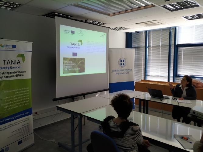 Ημερίδα διοργάνωσε η Περιφέρεια Κρήτης στα πλαίσια του Ευρωπαϊκού Έργου «ΤΑΝΙΑ - Treating Contamination through Nanoremediation – Αντιμετώπιση ρύπανσης μέσω νανο-αποκατάστασης» στο Πολυτεχνείο Κρήτης στα Χανιά. Σκοπός της Ημερίδας, που πραγματοποιήθηκε με αφορμή την επίσκεψη στην Κρήτη εκπροσώπων της γαλλικής Περιφέρειας Grand Est της Λωρραίνης, ήταν η συζήτηση και ανταλλαγή εμπειριών και απόψεων για τις εξελίξεις στον τομέα της απορρύπανσης εδαφών και υδάτων με τη χρήση τεχνολογιών νανο-αποκατάστασης στις ευρωπαϊκές περιφέρειες.