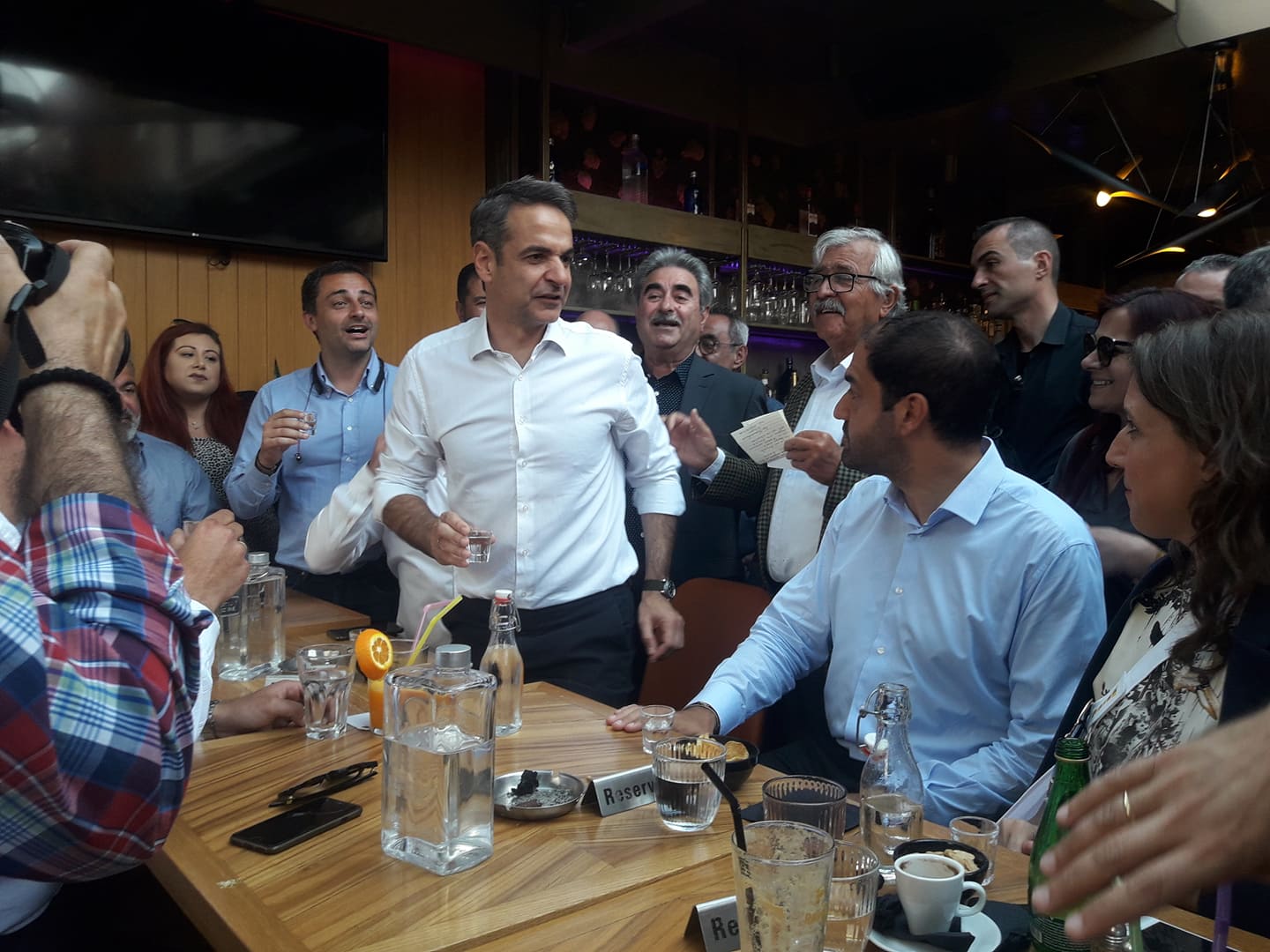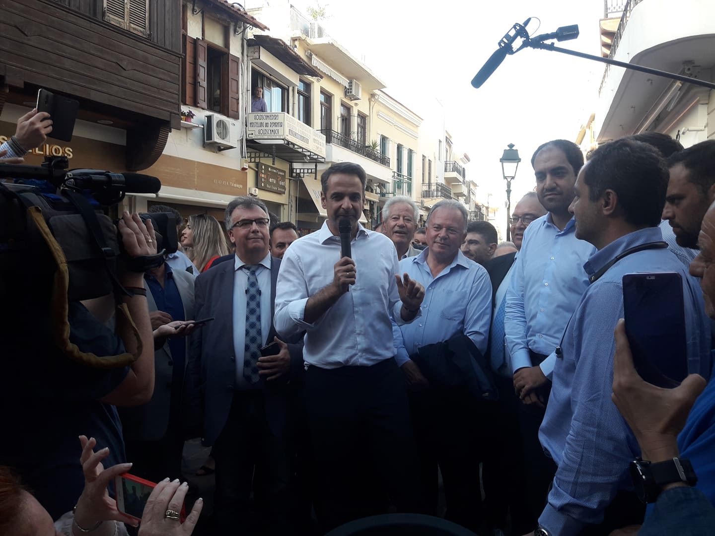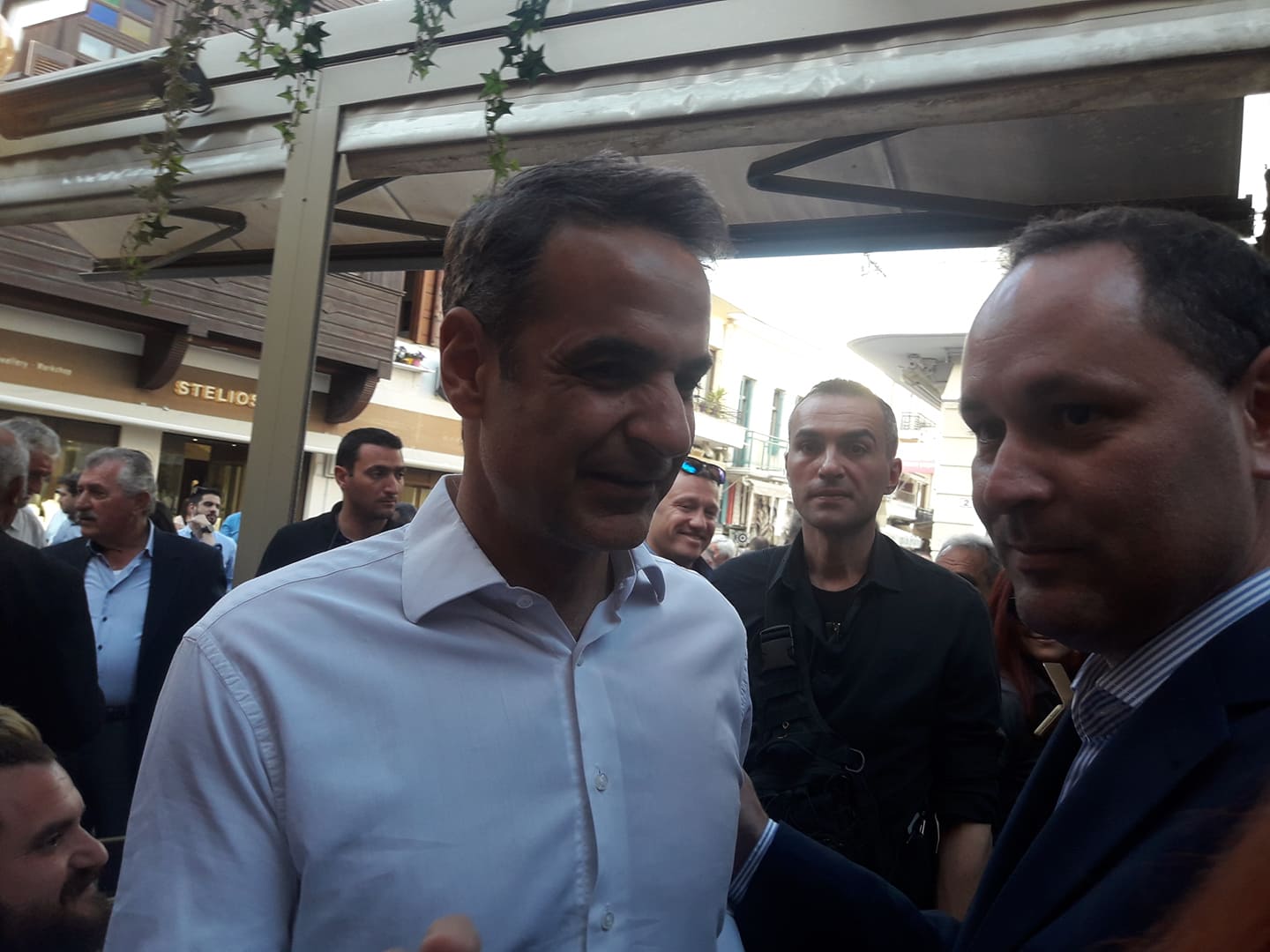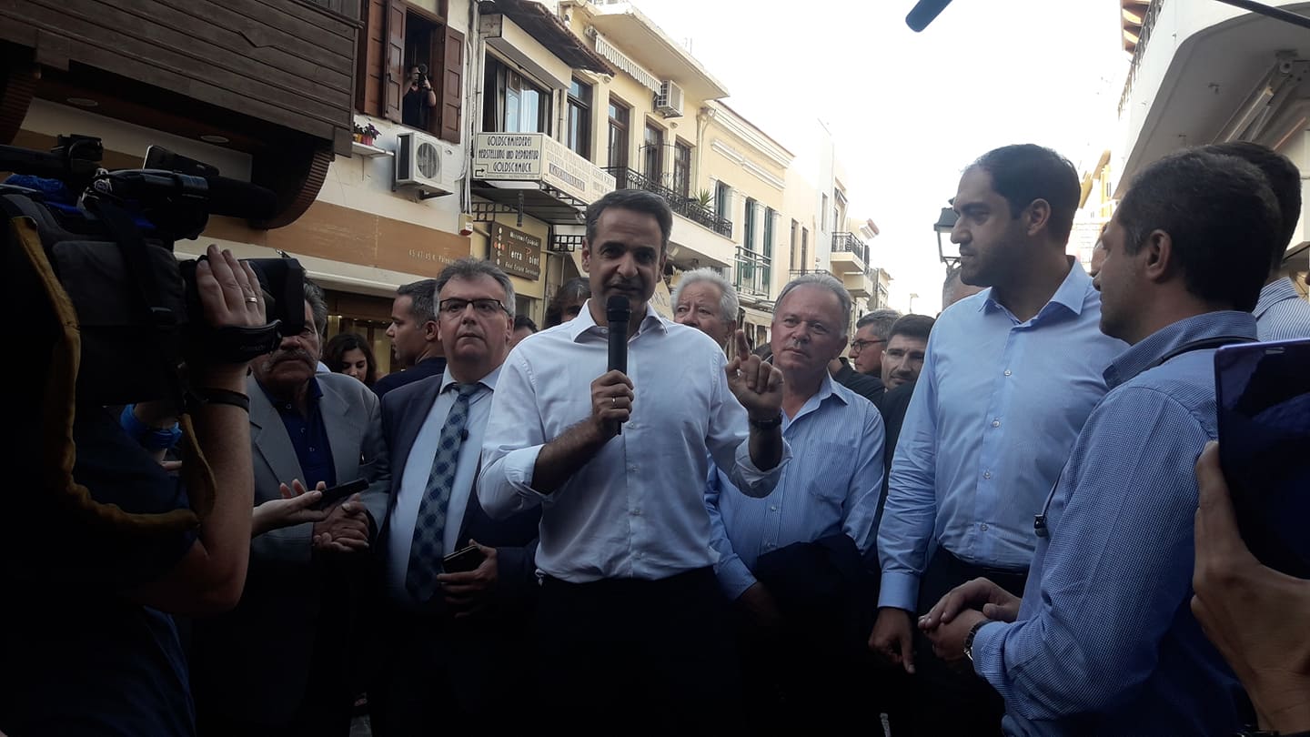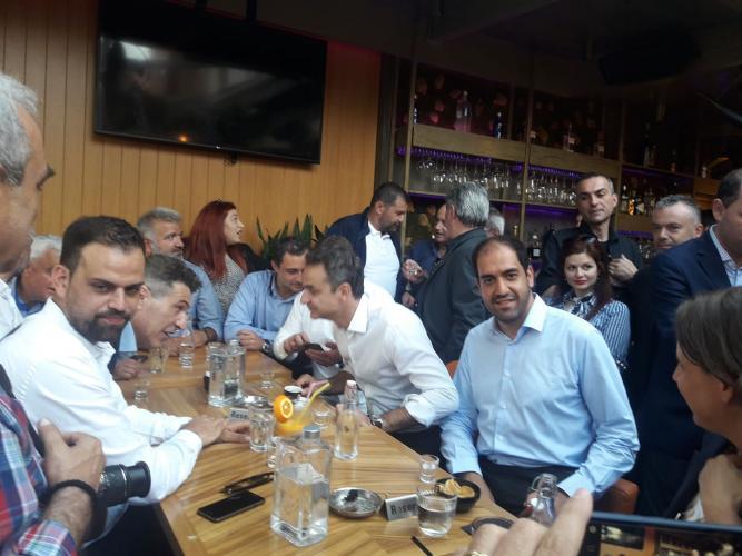 Αμέσως μετά τις δηλώσεις του ο Κυριάκος Μητσοτάκης έμεινε στην παλιά πόλη απολαμβάνοντας τον καφέ του με φίλους και μέλη της Νέας Δημοκρατίας.