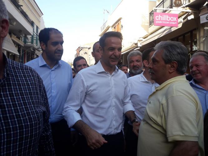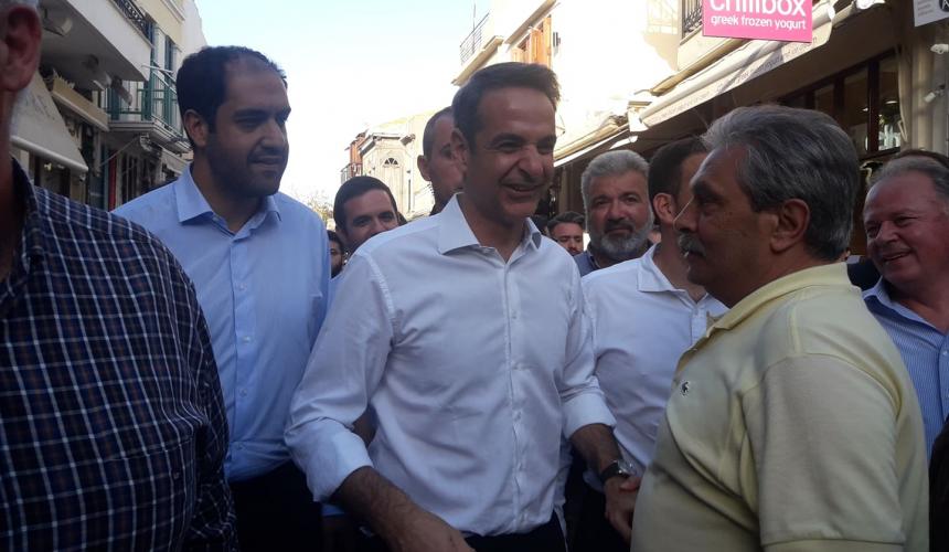 Θερμή υποδοχή επιφυλάσσουν αυτή την ώρα στην παλιά πόλη του Ρεθύμνου τα στελέχη της Νέας Δημοκρατίας στον Κυριάκο Μητσοτάκη.