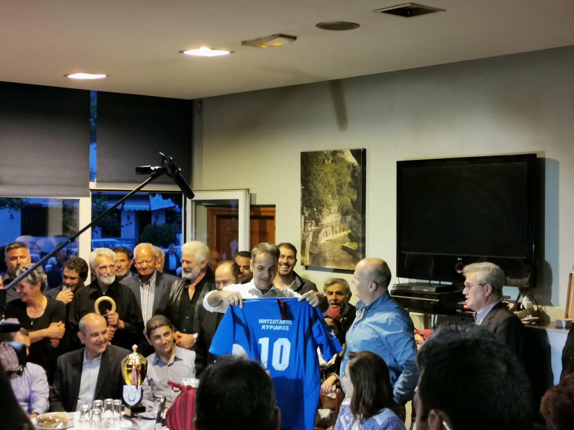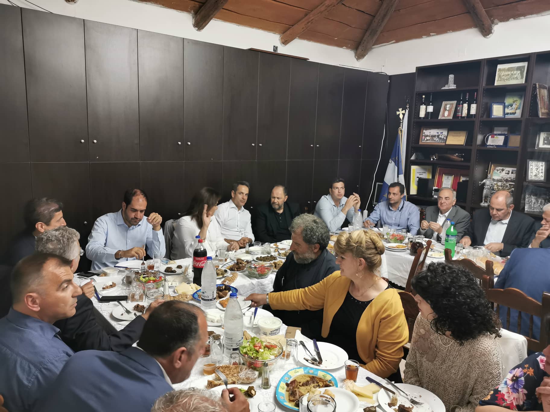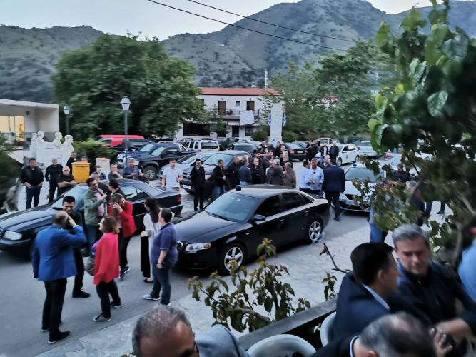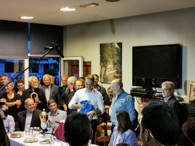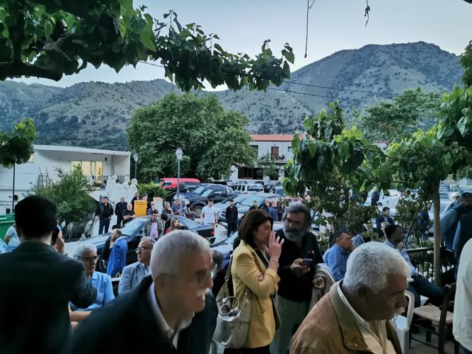 Ο Αρχηγός της Αξιωματικής Αντιπολίτευσης παρακάθεται σε γεύμα που δίδεται προς τιμήν του από τους κατοίκους του χωριού με την συνδρομή του πολιτιστικού συλλόγου ενώ νωρίτερα δέχθηκε δώρα και από την τοπική ποδοσφαιρική ομάδα. Τον καλωσόρισε ως εκπρόσωπος του χωριού ο κ. Γιάννης Γλετζάκης, Πρόεδρος του Α.Σ. Ρεθύμνου.