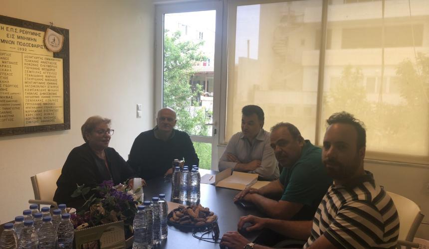 Συνάντηση με το προεδρείο της Ένωσης Ποδοσφαιρικών Σωματείων Ρεθύμνου είχε σήμερα η Αντιπεριφερειάρχης Ρεθύμνης, κα Μαρία Λιονή, κατά την οποία συζητήθηκαν θέματα προγραμματισμού αθλητικών υποδομών.