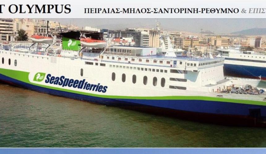 Η Επιτροπή Μετακίνησης που συστήθηκε από το Δημοτικό Συμβούλιο του Δήμου Ρεθύμνης την 14-03-2018 και που σκοπός της είναι η ΑΚΤΟΠΛΟΪΚΗ ΣΥΝΔΕΣΗ του ΡΕΘΥΜΝΟΥ με τον ΠΕΙΡΑΙΑ, χαιρετίζει και καλωσορίζει το FB OLYMPUS της SEA SPEED FERRIS, που θα εκτελεί το δρομολόγιο Ρέθυμνο-Πειραιά-Ρέθυμνο, από αρχές Ιουνίου, με ενδιάμεσες στάσεις σε Μήλο και Σαντορίνη, ΟΛΟ το ΧΡΟΝΟ, διακόπτοντας έτσι τον ακτοπλοϊκό μας αποκλεισμό.