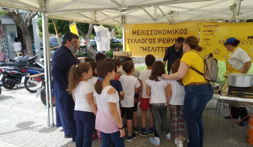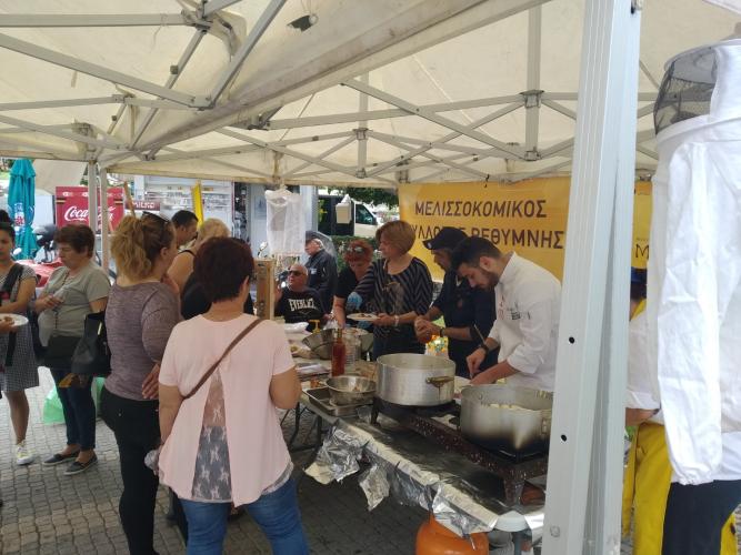 Σε περίπτερο που είχε στηθεί στον χώρο της Πλατείας μπροστά από την εκκλησία «4 Μάρτυρες» διένειμε μελισσοκομικά προϊόντα, μελισσοκομικά φυτά και έντυπο υλικό ενώ ενημέρωνε τους κατοίκους της πόλης, τους μικρούς και μεγάλους επισκέπτες των σχολείων, που έβλεπαν έκπληκτοι σε μία κυψέλη παρατήρησης την μοναδική κοινωνία των μελισσών και απολάμβαναν τα κεράσματα με τις «μελo-λιχουδιές».