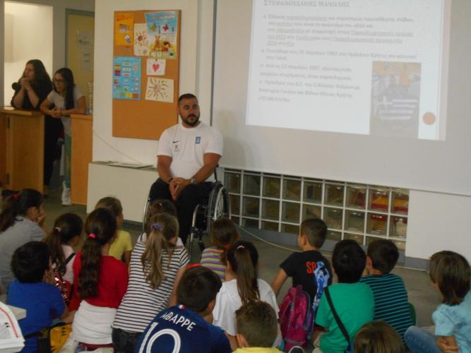Στη εν λόγω δράση συμμετείχαν υποστηρικτικά στην εκπαίδευση και ενημέρωση των μαθητών ο Μανώλης Στεφανουδάκης, Παραολυμπιονίκης και Παγκόσμιος πρωταθλητής στο ακόντιο και ο Γιώργος Διαλεκτάκης, αθλητής ΑμεΑ, τους οποίους ευχαριστούμε θερμά για την παρουσία τους.